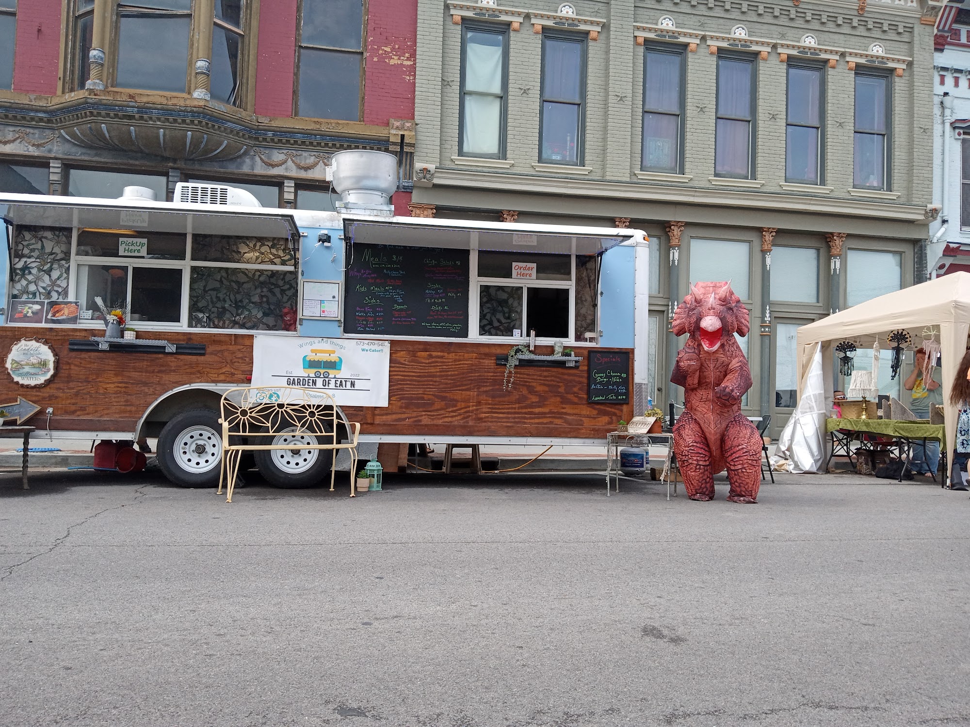 Good place to get food truck food and feed for your animals also!