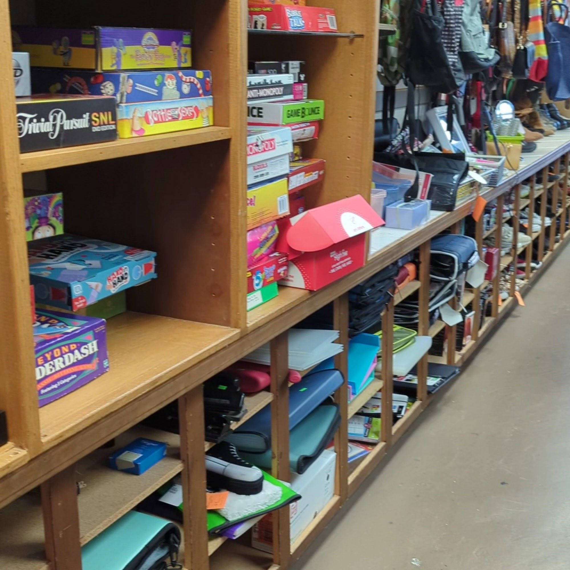 Very clean and organized! Staff immediately greets upon entrance and tells daily sales. Clothes easily found in size order! Dressing room available. Small assortment of cookbooks so not overwhelming. Prices very reasonable