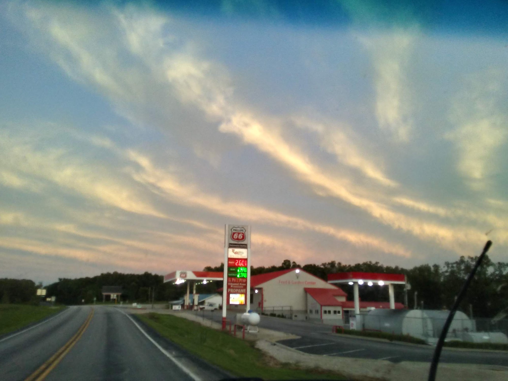 Phillips 66 is a great stop with ample parking. The staff is friendly and helpful. The store is clean and easy to get in and out of, offering a small convenience store inside with drinks and snacks. It features good food with lots of options like pizza, fried chicken, burgers, and sides. The food is good for fast food and the price is fair. The bathroom is always clean. It is handicap accessible and has gaming machines. Fuel prices are competitive.