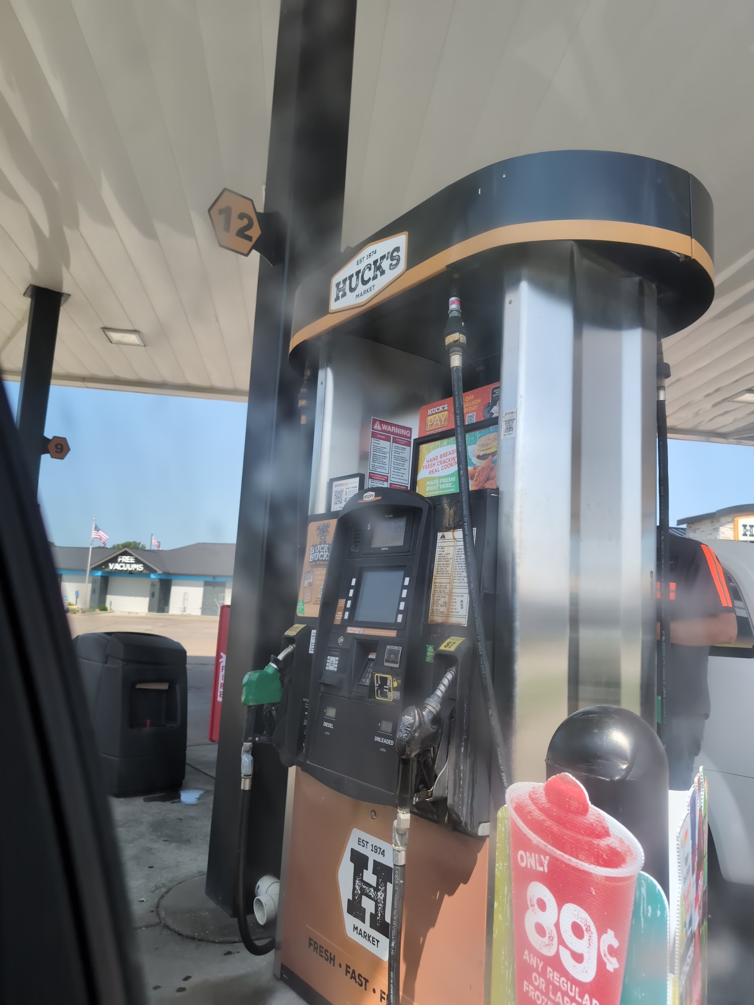 Huck's is a convenience store with a huge variety of food, drinks, snacks, and candy. Their Godfathers Pizza is amazing and exactly as remembered, and they also offer items like a grilled buffalo chicken wrap that is huge and delicious. The gas is cheaper than other places around. The store is newly renovated and reasonably clean, with a lot of selection. Staff is often friendly and nice, and the cashier is always happy to help, though sometimes the kitchen crew does not greet customers. It can be busy with a line, but customers are usually in and out pretty quick.