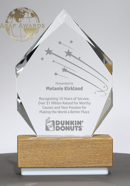 Unique Crystal Awards and Trophies since 1981! Our Women owned third generation company puts People First! As A Factory direct recognition awards mfg., we're proud of the exclusive hand hand built in the USA amazing designs that motivate, encourage and recognize people who do great work - the perfect reminder that they are valued and appreciated. What sets us apart is the unique styles that can only be found at Asap Awards while. If your looking for a hands free full circle experience, we guarantee you'll be excited you found us! Give us a call. (636)537-1517