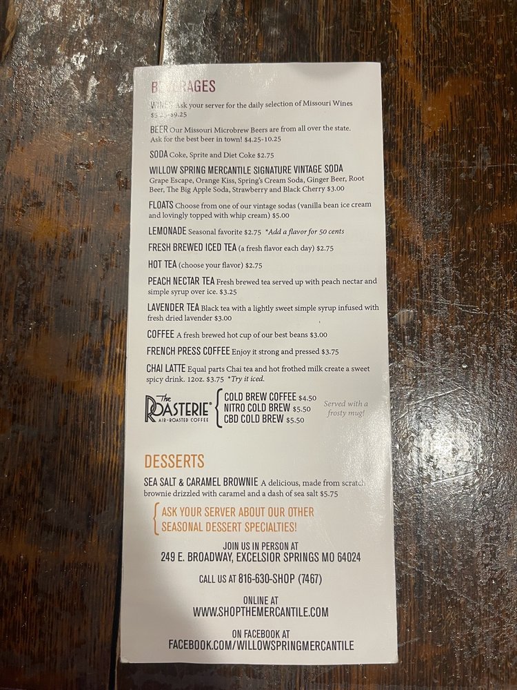 Willow Spring Mercantile is a quaint boutique retailer located in Excelsior Springs, offering a unique selection of Missouri goods. The shop features the state's largest collection of Missouri wines, craft beers, and distilled spirits. Visitors can enjoy a bistro that serves delicious homemade food for lunch until 3 PM during the week and 5 PM on weekends. The reviews highlight the great food and exceptional service, with many praising the friendly owners and staff. Customers have enjoyed various menu items, including a turkey BLT and an acclaimed open-faced albacore tuna melt, paired with local wines. The cafe is described as adorable, and the shop offers cute and neat items, making it a must-visit destination. Overall, Willow Spring Mercantile is recognized for its wonderful atmosphere, tasty food, and welcoming service, making it a favorite among locals and visitors alike.
