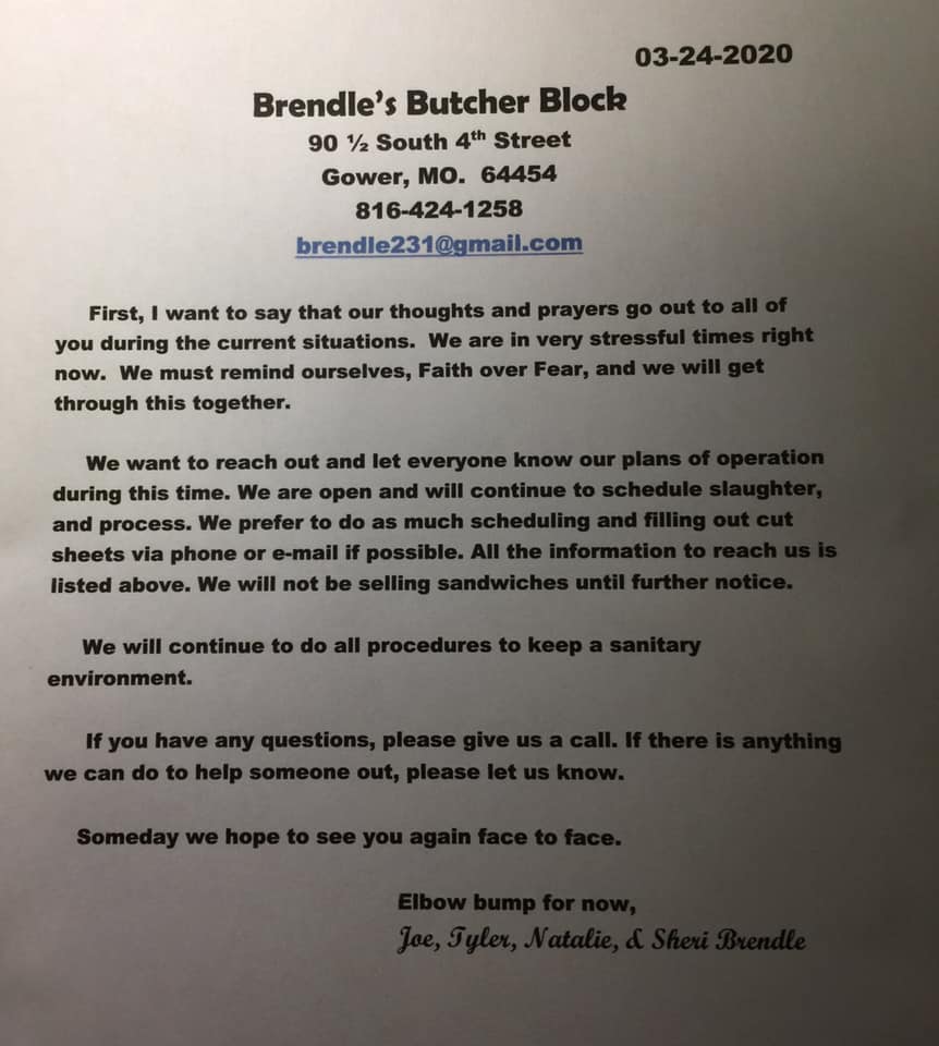 Brendle's Butcher Block LLC is a small, family-owned business known for superb service and great products. It is considered the best processor in the area for deer, beef, and hogs. The family is always nice, pleasant, friendly, kind, and helpful. They take pride in their work, providing great tasting salami, pepperoni, and the best tenderloin sandwich. They give you your own deer and do not mix meat. The small space is clean, with reasonable prices. Customers and their own clients are extremely happy with the consistent quality, quantity, and fantastic experience, noting they never disappoint.