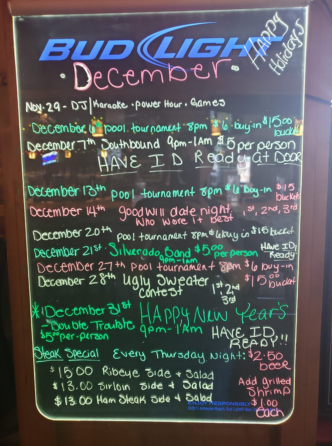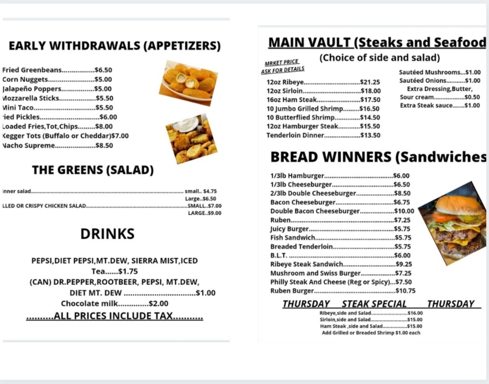 Steaks are fantastic! So are French fries. Baked potatoes and salad! Delicious!!