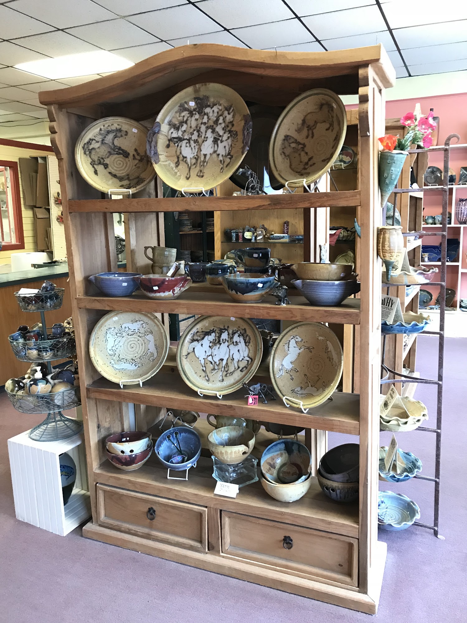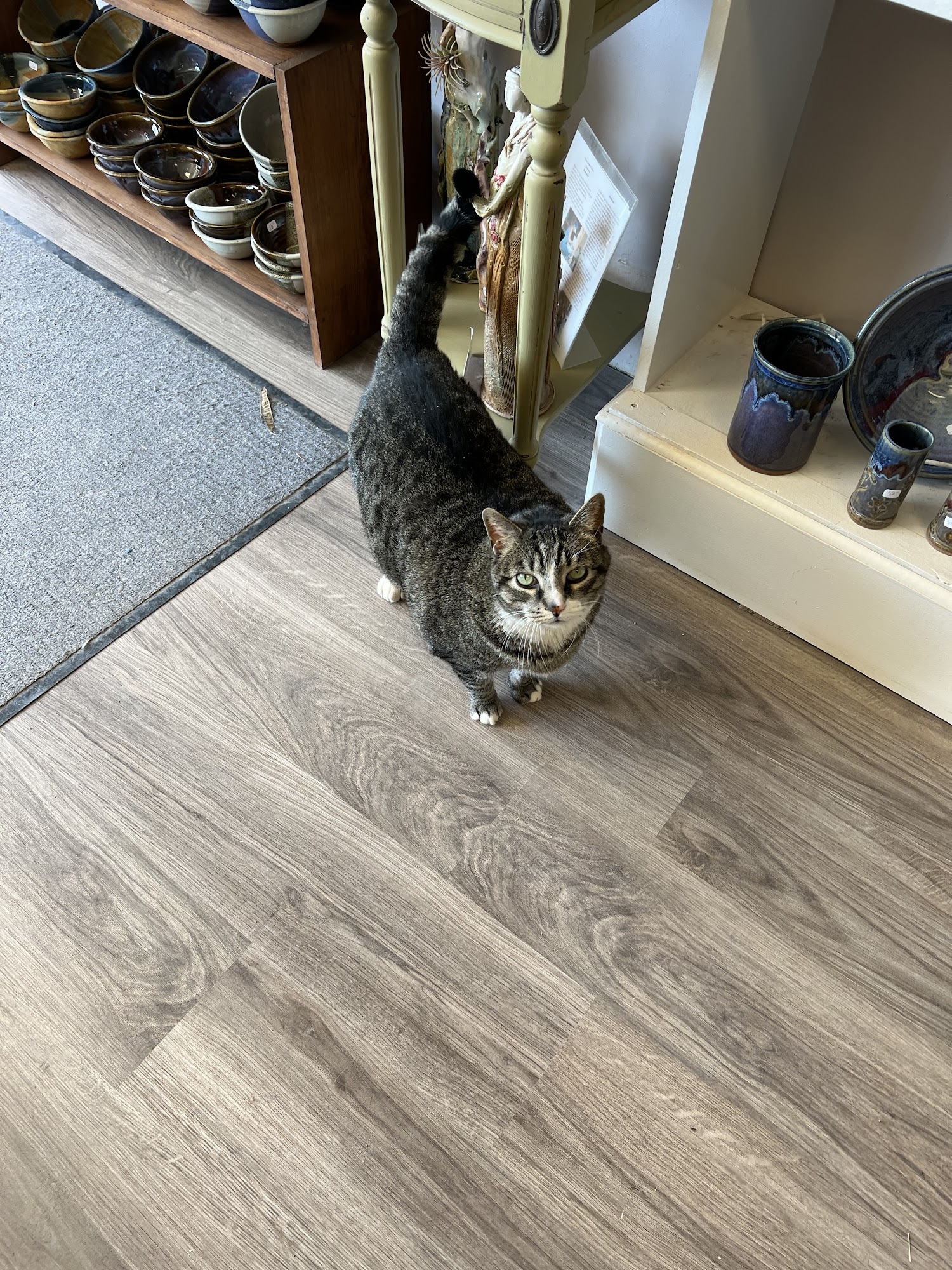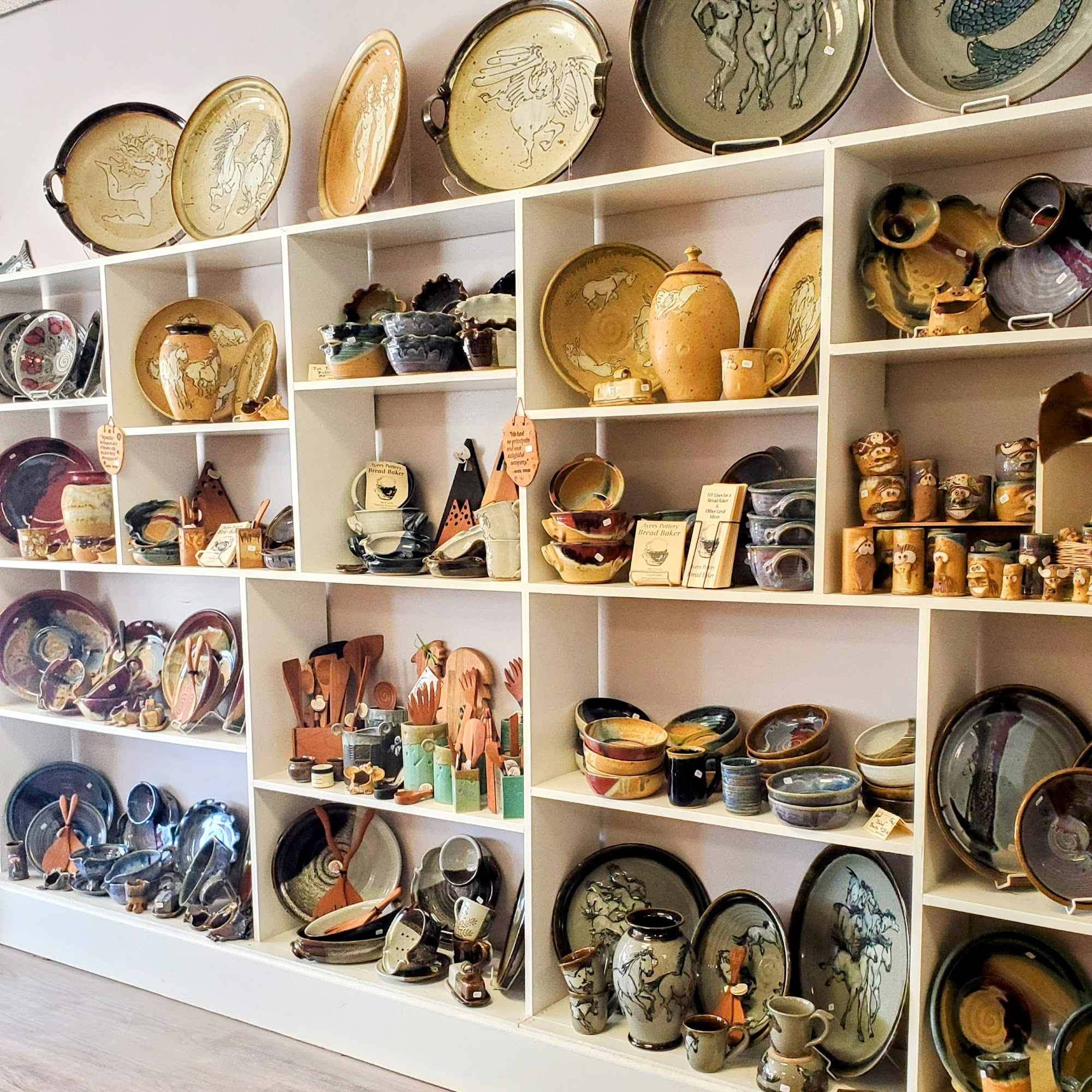 Ayers Pottery has been creating beautiful, functional stoneware for over 50 years, with a focus on quality and everyday use. The shop features their own pottery, including mugs, dishes, and coffee cups, known for their unique finishes and craftsmanship. It also offers pottery, jewelry, woodworking, and art from artists across the country. Visitors can find a wide variety of items such as bird feeders, planters, trinket dishes, and incense burners. The store is friendly and welcoming, with a friendly store cat adding to its charm. Located next to Java Jive, it is a popular destination for those seeking well-made, high-quality handmade pieces.