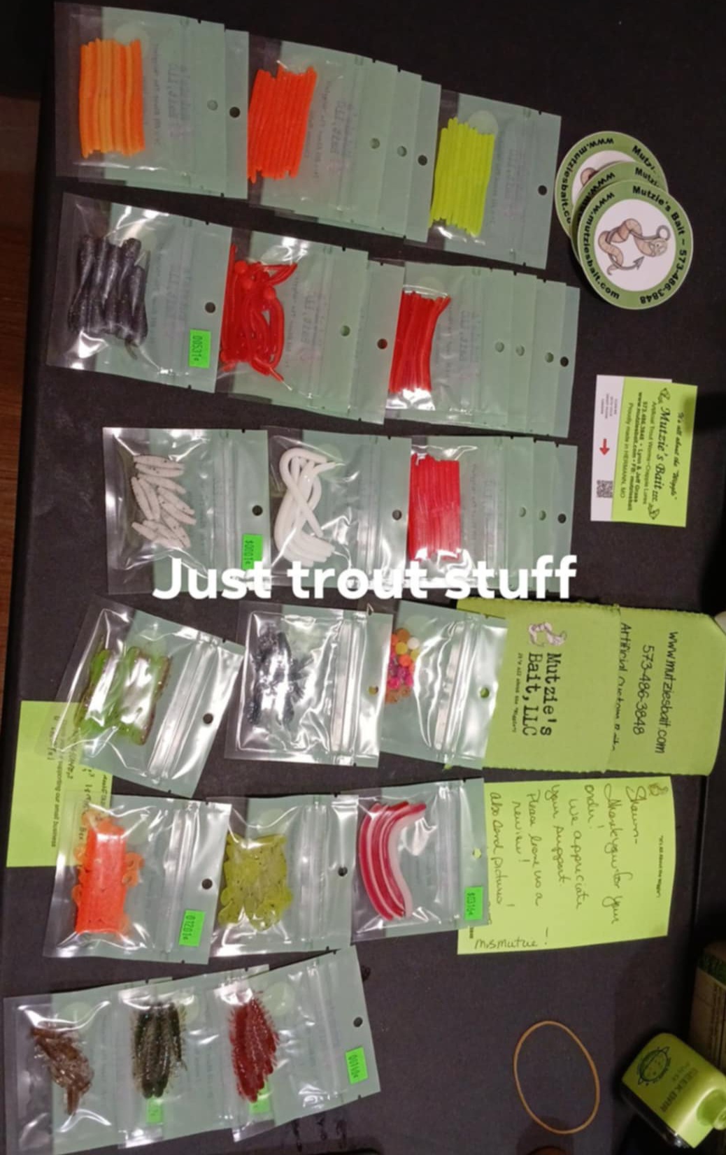 Mutzie's Bait, LLC is highly praised for its excellent fishing products and outstanding customer service. Customers have found high-quality baits, including crappie jigs and special order lures, that deliver great results on the water. Many have experienced success in catching their limits with the baits purchased, highlighting the effectiveness of items like garlic trout worms and pink wiggling worms. The business is noted for quick shipping and responsiveness, with many customers appreciating the personal touch when placing custom orders. Additionally, there is confidence in the quality and affordability of the products, making it a trusted choice for anglers. Overall, Mutzie's Bait, LLC is recommended for its strong scents, durability, and a friendly staff that ensures a satisfying shopping experience.