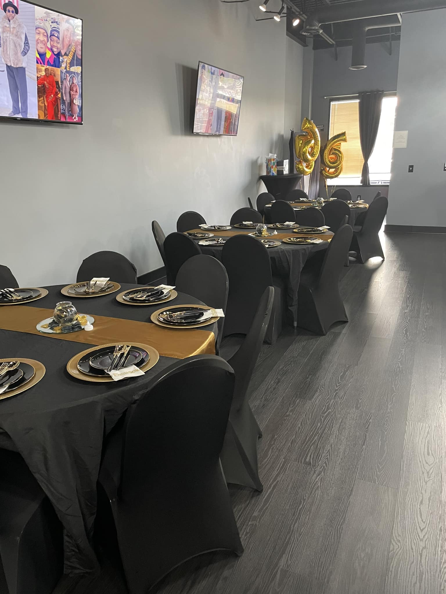 This is an Upscale Venue. The space was great for Salsa, and Two - Stepping. There is a kitchen and nice tvs on the wall. This is more for the Classy event.. Corporate meeting, Baby Shower’s, Seminars. But it could be used for any Fitnes boot camp- yoga , Zumba… the space is there.