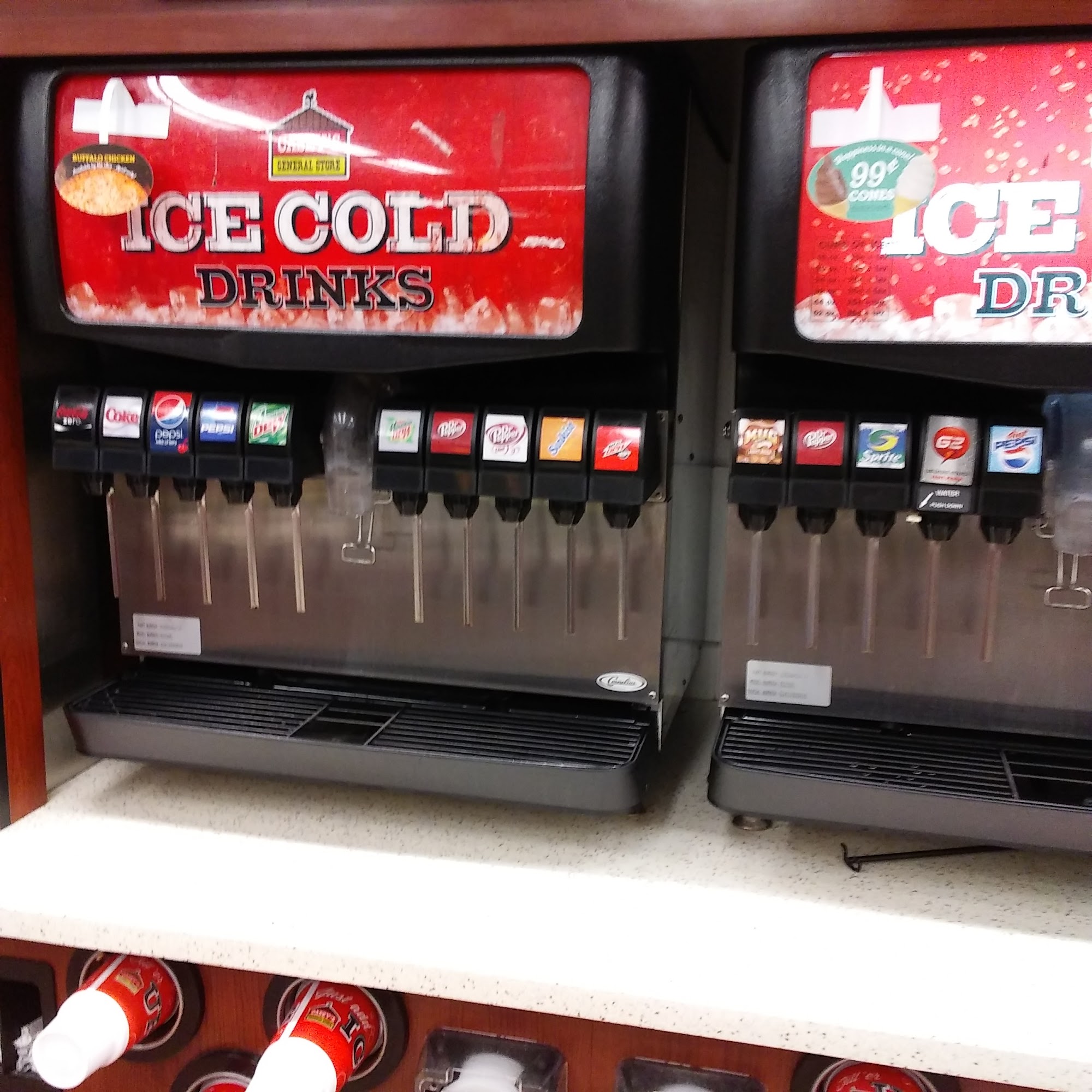 I get coffee and ice, cause they ice is just amazing soft and crunchy. Sometimes energy drinks they have good deals.