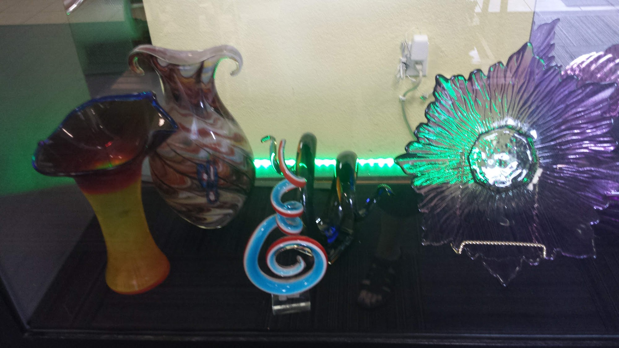 Clean an nice. Offers glass blowing classes. Get legal when the bus is there also. Has lots of unique handmade blown glass pieces an figurines. Also love how they have kept the history of the old Lebanon jr high alive by implementing paintings from there In They ceiling tiles.