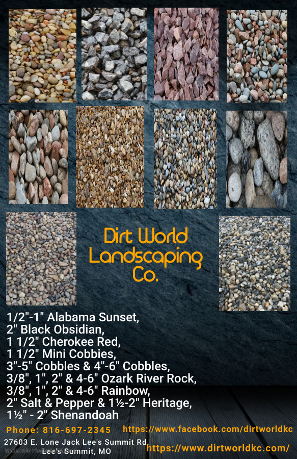 Our company strives to provide the perfect and most affordable products when it comes to landscaping your commercial or residential property. We have a large selection of wholesale and retail products, as well as excellent customer service. We are located at 50 Highway and Missouri 7 Highway, Lee’s Summit, MO 64086. Dirt World has been servicing the Kansas City Area for many years. Our Family Owned and Operated Soil and Landscape product company offers personalized service every time. We don't believe in one price fits all, because we won't skimp on your service. We provide accurate, realistic, and reasonable estimates. We take most Major Credit Cards. Place your order over the phone.