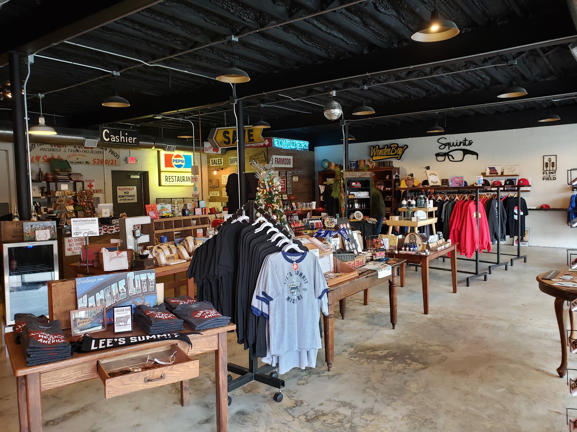 Locally made and inspired items. Located in a former fire station in downtown Lee's Summit, our retail space offers local, handmade, and found items. Browse our collection of high quality t-shirts made in the USA and printed right here in Kansas City. Prints, leather goods, jewelry, stationary, furniture and decor either inspired or made in the area is our focus. Many items are designed and custom built in our nearby makerspace (Fossil Forge). We always have a rotating stock of one-of-a-kind, vintage, and antique finds. Seriously, we'd love for you to stop by!