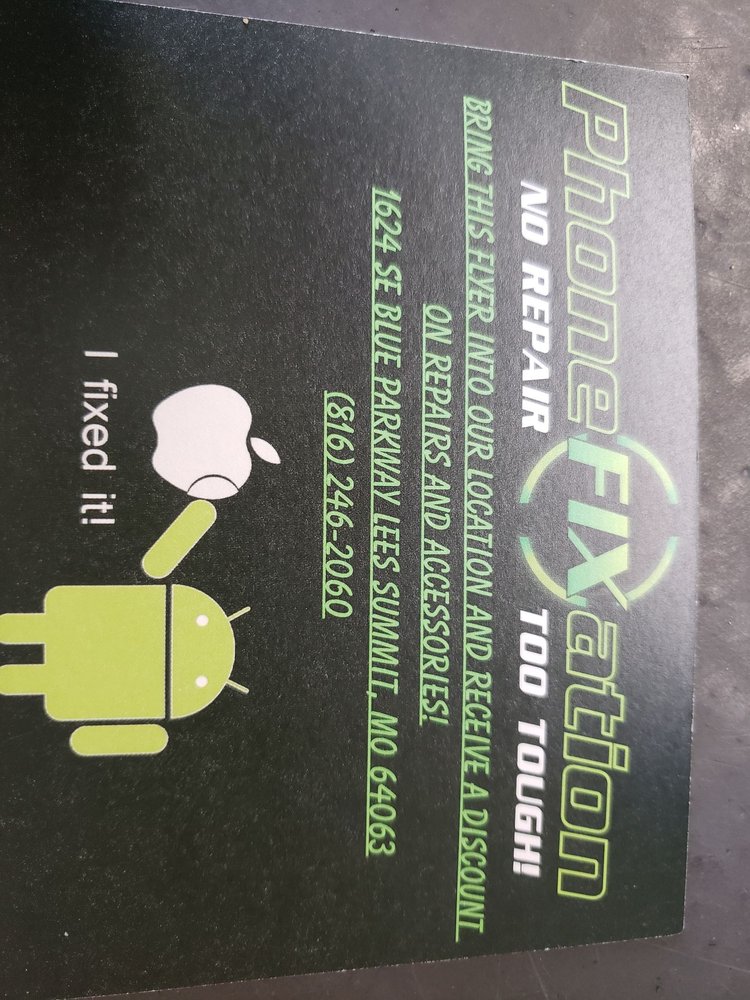 Located in Lee's Summit, MO, PhoneFixation is a one-stop shop for all electronic and cell phone repair needs. They fix problems like cracked screens, water damage, devices that won't power on, and other hardware issues. The business provides fast, polite, and accurate service from highly qualified and knowledgeable technicians. They offer professional technical support and honest, fair prices. Customers report excellent customer service, with staff that works quickly, corrects issues with competence, and talks through options. The service is often done on the spot, saving customers from having to buy new devices. Many highly recommend this business for its top-notch service.