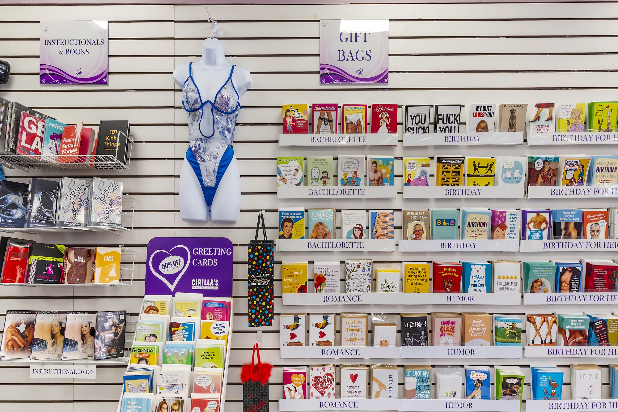 Cirilla's in Liberty, MO is a friendly and organized store that offers a wide selection of adult products, including sexy lingerie, vibrators, adult toys, lubricants, fantasy kits, and novelty items. Conveniently located in the Liberty Corners Shopping Center, the store provides a discreet shopping experience for those looking to spice up their romantic moments or explore new interests. With over 30 years of service, the staff is known for being helpful, knowledgeable, patient, and courteous. Customers frequently praise the staff for their kindness and expertise, often mentioning staff members by name. The store is clean, well-kept, and welcoming, making it a pleasant place to shop. Whether for a romantic night or personal exploration, Cirilla's aims to provide a comfortable environment with excellent customer service to meet each individual's needs.