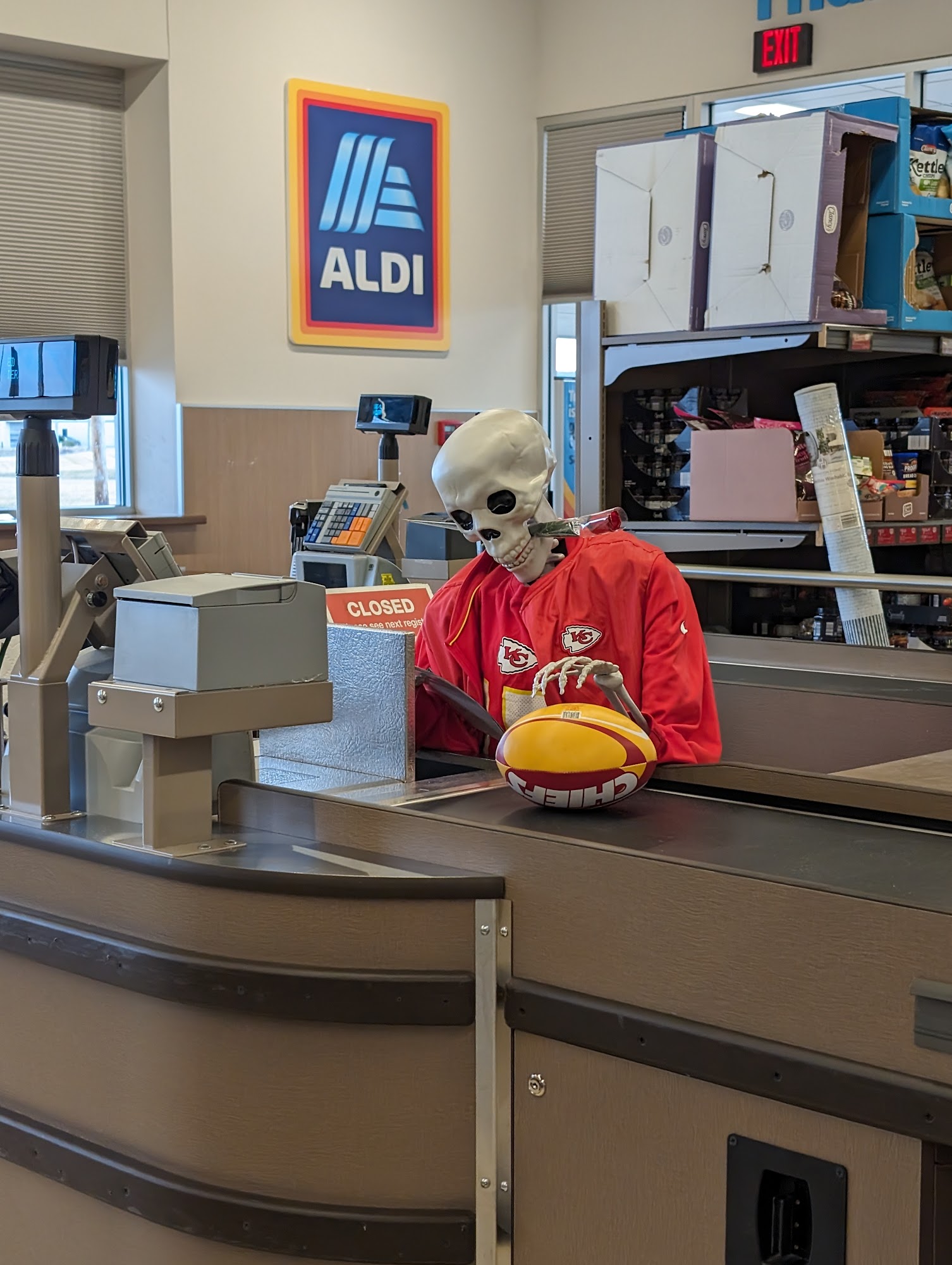Aldi's is my favorite store for the value and the type of food you're able to buy!!!!! The cashiers are normally friendly and help you out if you need help finding stuff!!!!!! They have a wonderful gourmet cheese selection on the wine selection even though it's cheaper it's really good I recommend the sangria!!!!!!