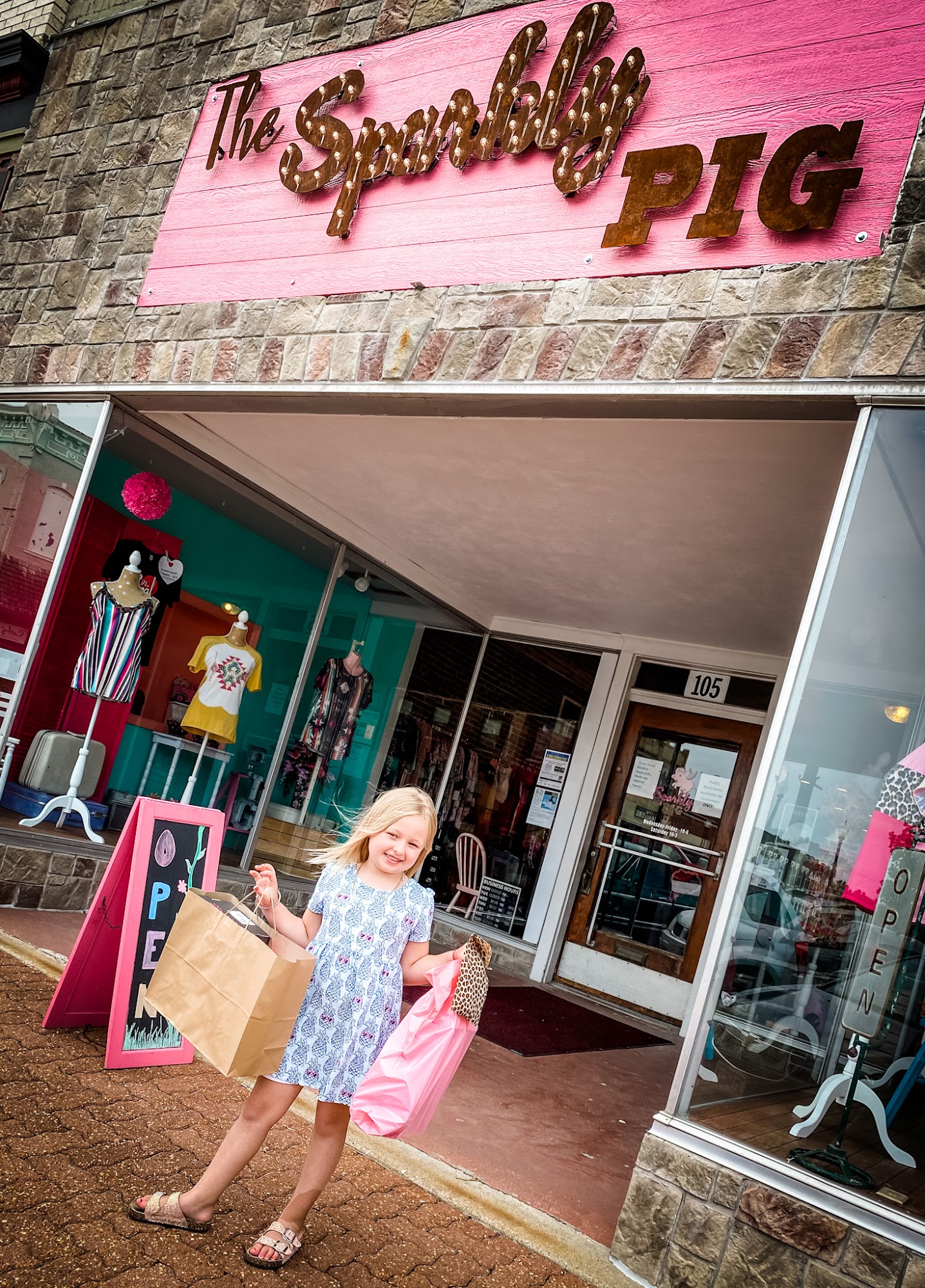 I absolutely love The Sparkly Pig. The clothes that April offers are personally thought out with each and every customer in mind! She offers a wide variety of clothes that you will not leave disappointed! Come in and check it out for yourself!