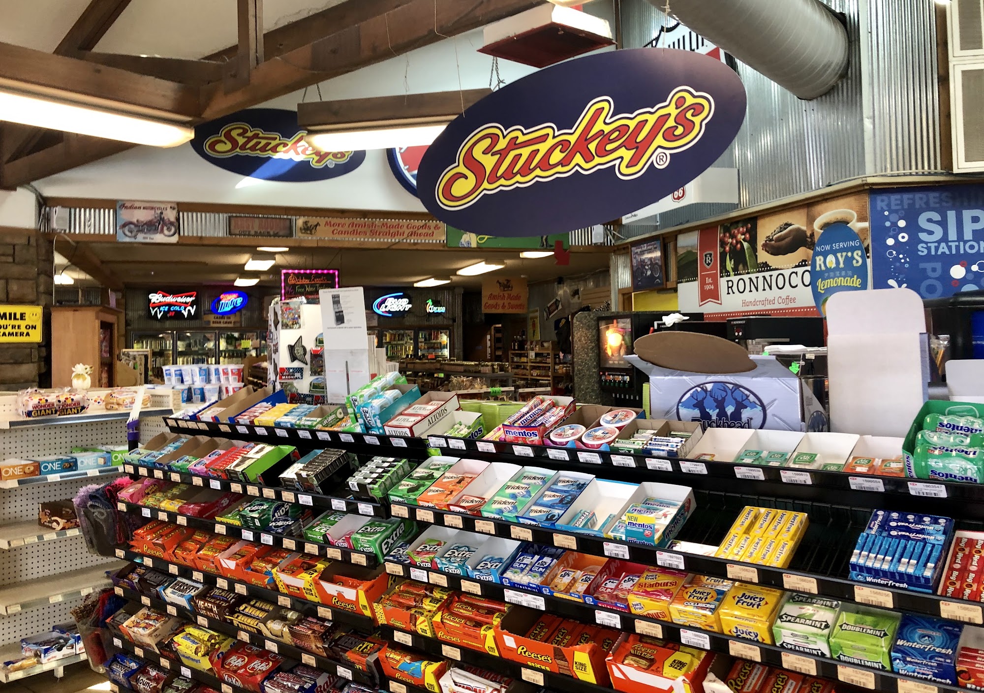 Stuckey's has been a roadside destination since 1937, known for its original Pecan Log Roll and as a roadside oasis. The standalone location offers a wide selection of wine and beer and features a home-style cooking restaurant famous for fried chicken. Out front, a fun chicken statue welcomes visitors, and the three-acre grassy area is perfect for dogs and horses to graze. The business provides reliable, always-clean service and is always open, making it a dependable stop in the middle of nowhere. Visitors have enjoyed discovering freshly prepared Indian food and affordable gas prices. Friendly staff, including a helpful employee at the Dunkin' inside, adds to the positive experience. While most reviews praise the nostalgic atmosphere and variety, some mention that the place can be rough at times and not ideal for fountain drinks.