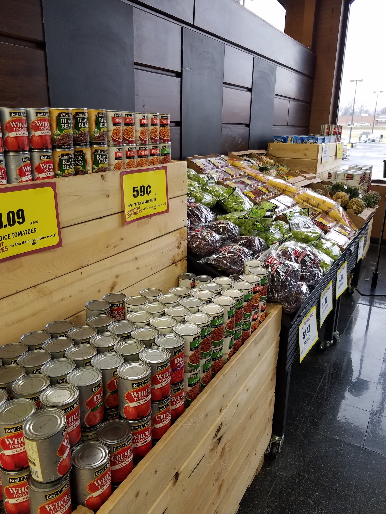 Great selection of food except produce is always more expensive than Aldi or Walmart . We love house mafe tortilla chips.