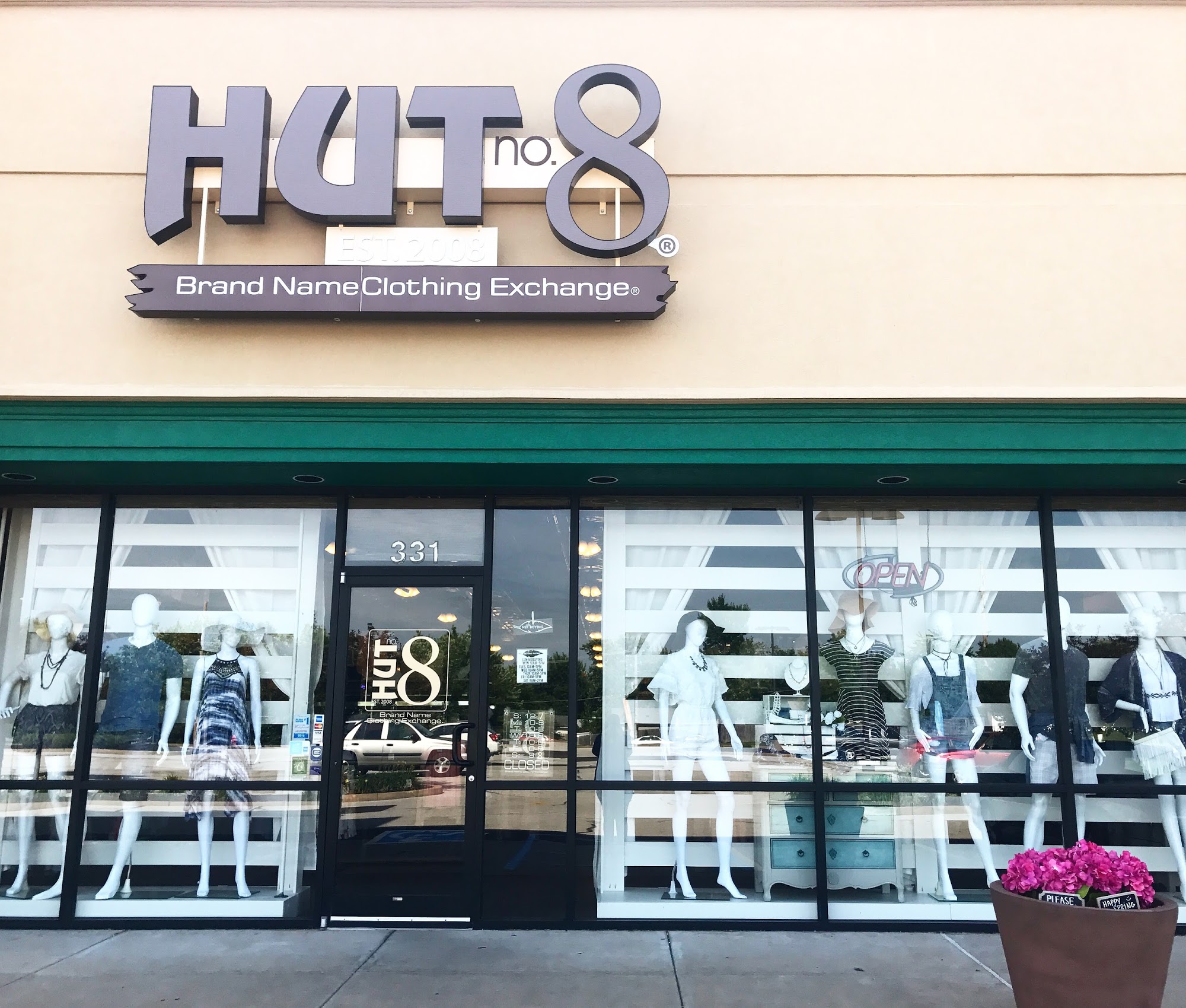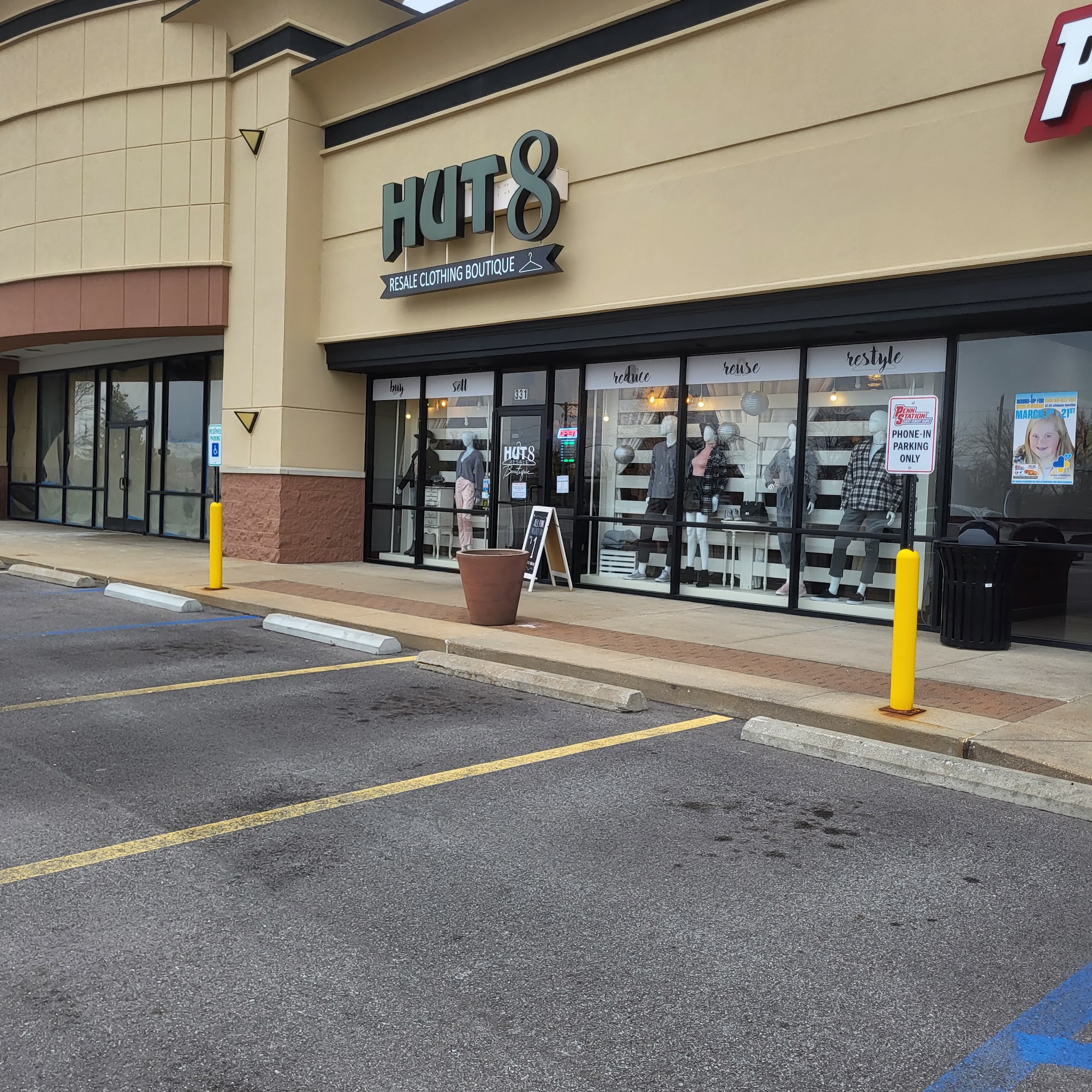 Hut no. 8 is a resale clothing store that offers a variety of clothes, accessories, bags, jewelry, and small items like car air fresheners. The store is small but well organized, with clothing sorted by size and color, making browsing easier. Shoes are displayed on top of the racks and appear nearly new, with no old or stanky shoes present. The store often highlights particular items using endcaps and displays, and sometimes features sale racks at the front with items priced at $1, which are easy to browse without digging through racks. Dressing rooms are large, open, and equipped with hooks and chairs outside, providing a comfortable space for trying on clothes and for friends or family waiting nearby. Customers have found good pieces here, especially if they are looking for specific styles. Many items are in good condition with little wear or staining. The pricing is generally reasonable, and some designer items are available at affordable prices. The store tends to have quick inventory turnover, making it a good place to visit regularly for new finds. Staff are friendly and attentive, offering helpful information about sales and making the shopping experience pleasant. However, some customers have noted that after store rearrangements, finding clothes that fit medium or larger sizes can be difficult, and some feel that certain items are overpriced for a resale shop. Overall, Hut no. 8 is a popular spot for shoppers seeking stylish resale clothes with a good atmosphere and organized layout.