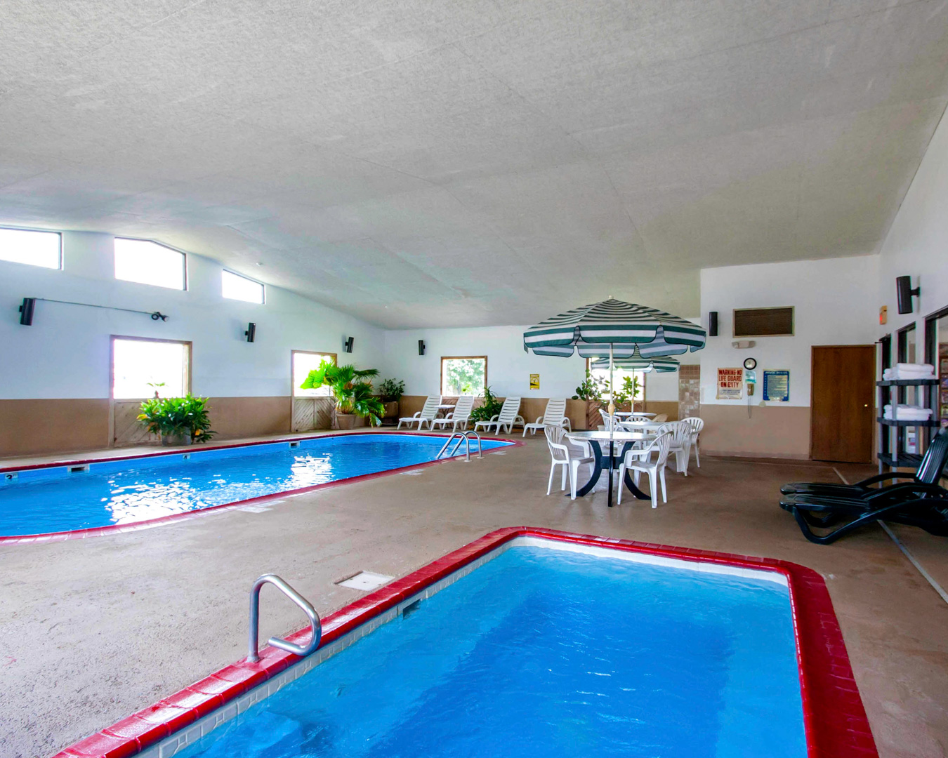Nothing fancy but very friendly and helpful. Rooms were clean, nice sized with large bathroom. Pool and hot tub was clean and we really enjoyed our time there. Breakfast had hot foods with waffle toast and bagel options. If they had Cr cheese bagel would have been perfect