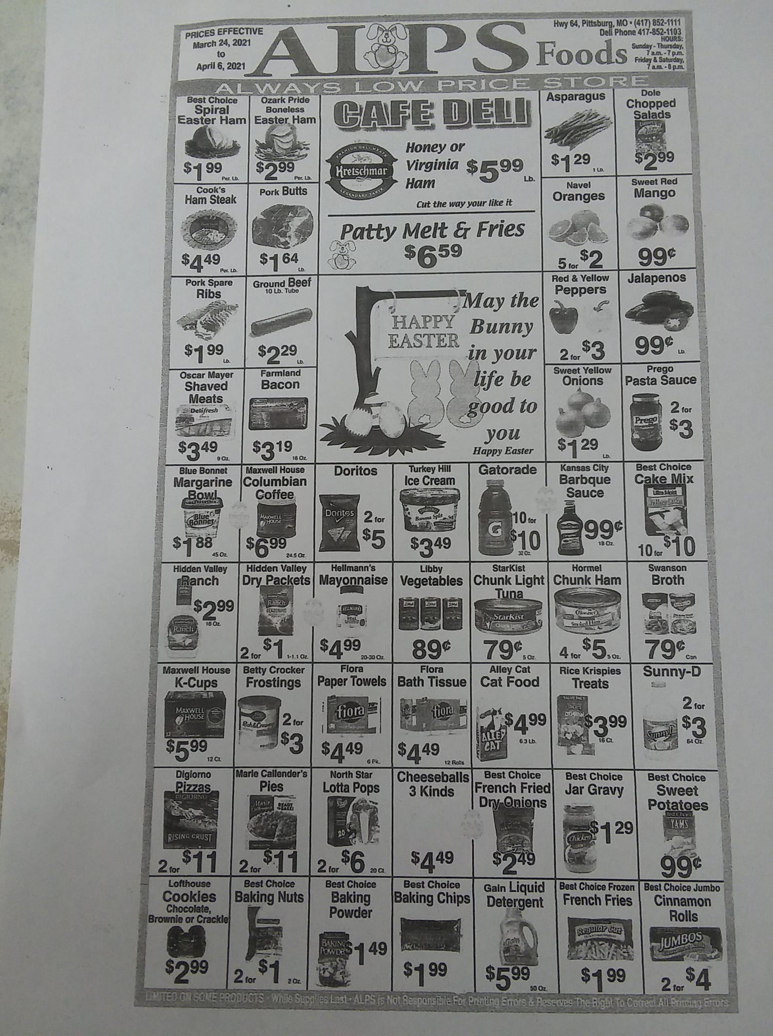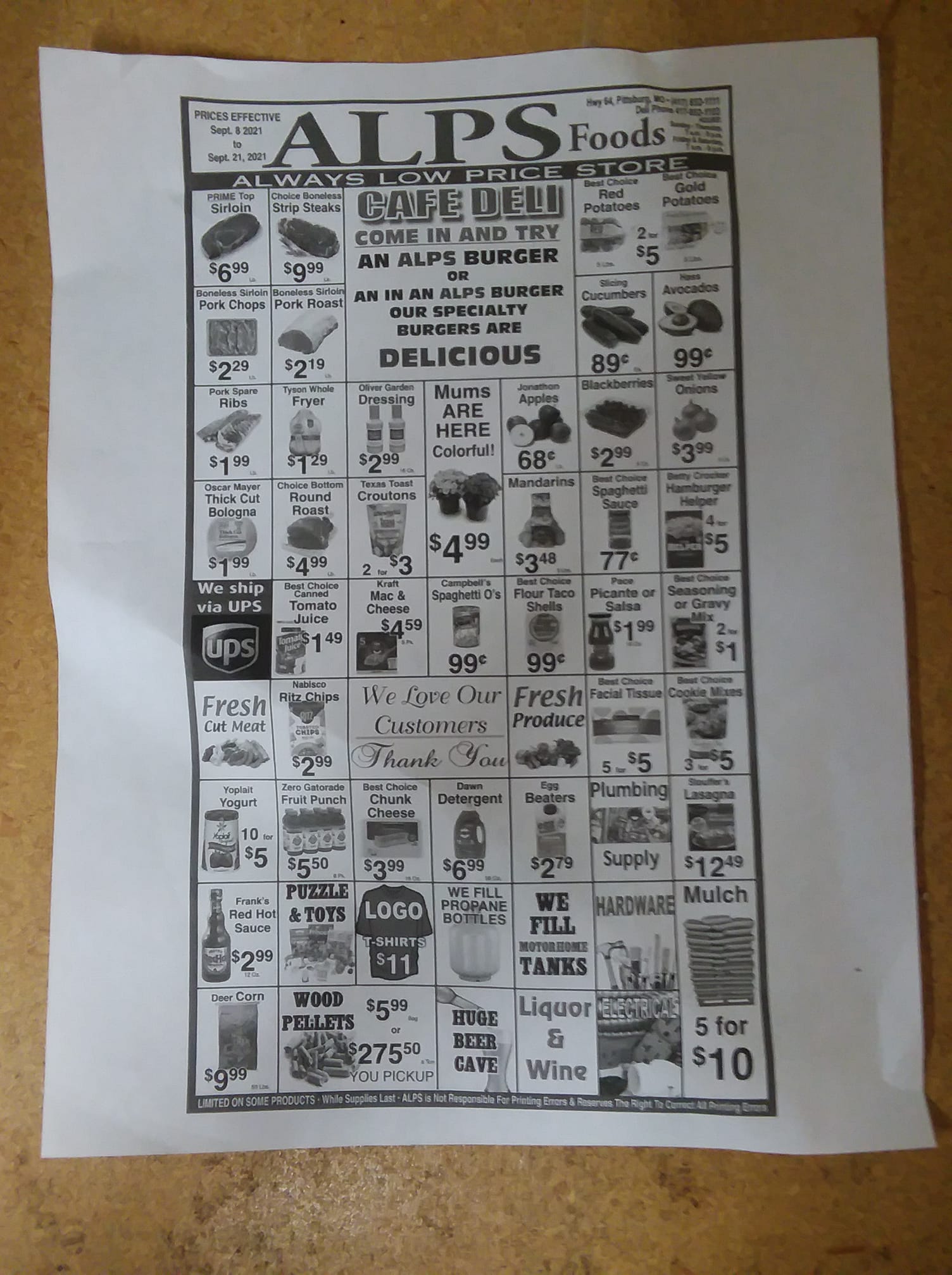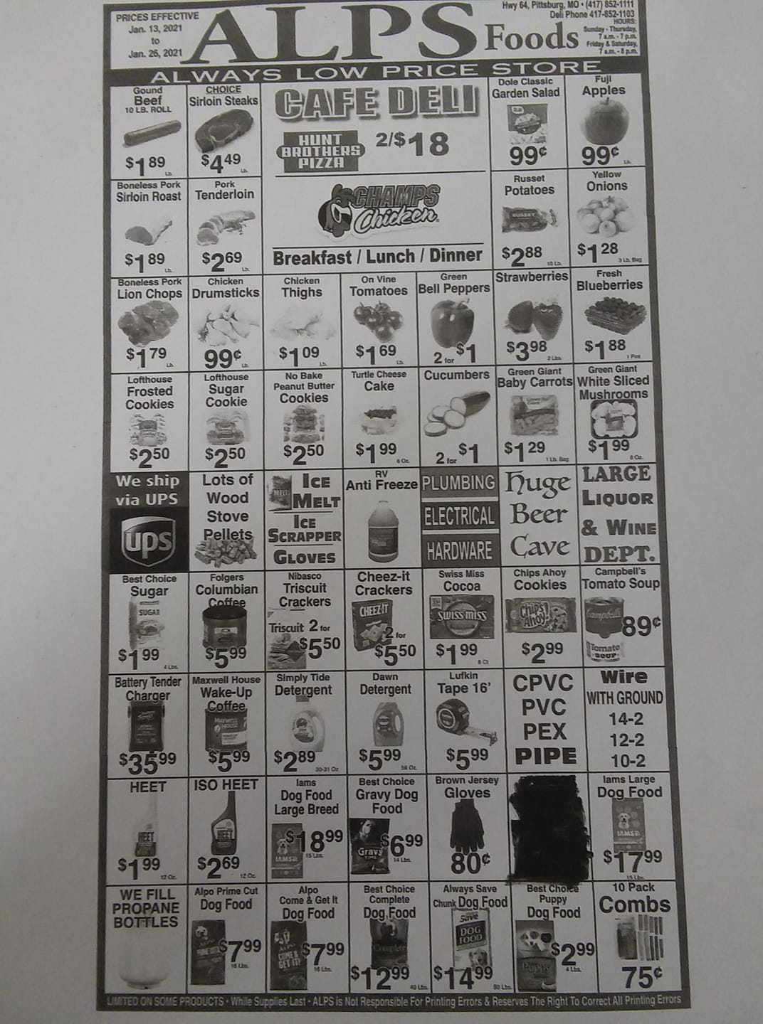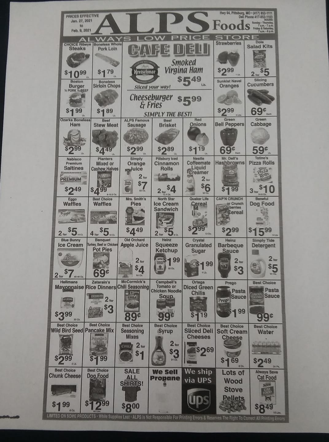 ALPS Supermarket is a local, independently owned store that offers a wide variety of quality products and exceptional customer service. It has an expanded selection that includes groceries, homegoods, unique gifts, and party supplies. The store also features camping and RV-related items, fishing gear, plumbing supplies, and helium-filled balloons, making it a convenient spot for many needs. The deli is now open, serving homemade meals from breakfast to dinner, with options for hot meals like fried chicken, chicken tenders, and breaded tenderloins, all cut fresh in-store. Customers can enjoy daily lunch specials or call in orders for pickup later. The store also sells ethanol-free gas and 93% octane at their new 24/7 gas pumps. Many visitors appreciate the friendly staff, who always treat customers with kindness, even during busy times. The store's variety extends to camping supplies such as adapters and hoses, and it is conveniently located just minutes from Pomme de Terre Lake, making it a popular stop for campers. While prices are a bit higher, the store offers good selection, including alcohol, groceries, frozen goods, and a smokeshop. Overall, ALPS Supermarket is a friendly, well-stocked store that caters to a wide range of needs, providing a great shopping experience for locals and visitors alike.