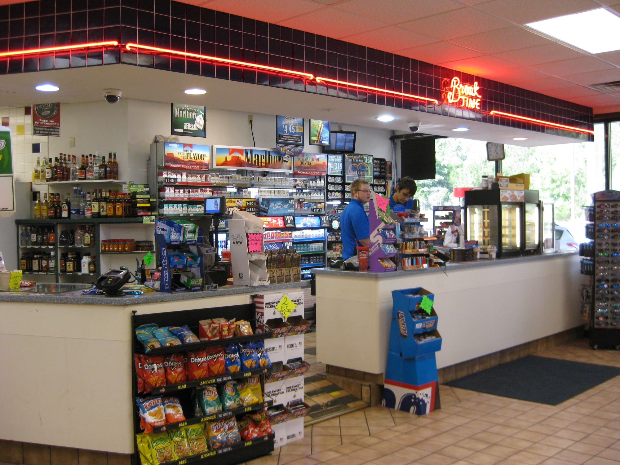Break Time is a convenient stop for travelers, offering Hunt Brothers Pizza, fresh breakfast sandwiches, and some of the best coffee around. The store is clean, and the staff is friendly and helpful. Customers appreciate the clean environment and quality food, making it a good place to stop on the way to work or during travel. The fuel at Break Time contains more additives, which helps it burn cleaner in engines. However, some reviews mention that the water for washing windshields isn't always kept clean, and there are occasional issues with staff behavior and limited pizza hours. Overall, it is a friendly and reliable spot for a quick, satisfying break.
