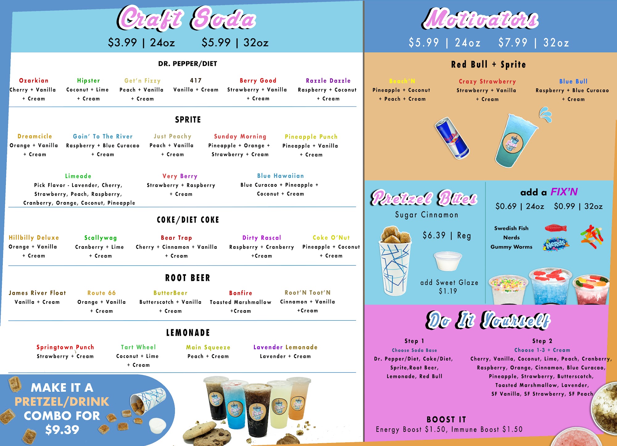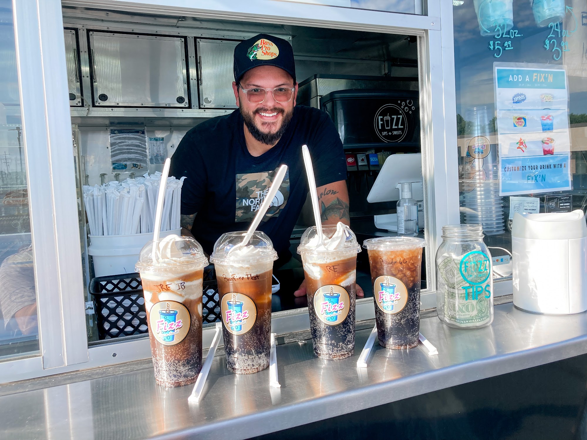 Fizz Sips N Sweets is a local business offering super tasty food and drinks, including unique soda-pops and Red Bull creations. They provide a large variety of prominent and rich flavor combinations, with a kaleidoscope of fun flavors to choose from. Customers can select from popular premade drinks or make their own custom blends, resulting in unique flavor-infused bubbly goodness. The food is also great, with specific praise for their nachos. The service is fantastic, with staff described as very kind and sweet. The owners are super sweet as well. They have a drive-through for convenience. The prices are noted as very good and the best priced in town, with specific mention of an excellent value for a large drink. The establishment receives high recommendations, with many customers stating they will definitely be coming back and can't wait to try more from the menu.