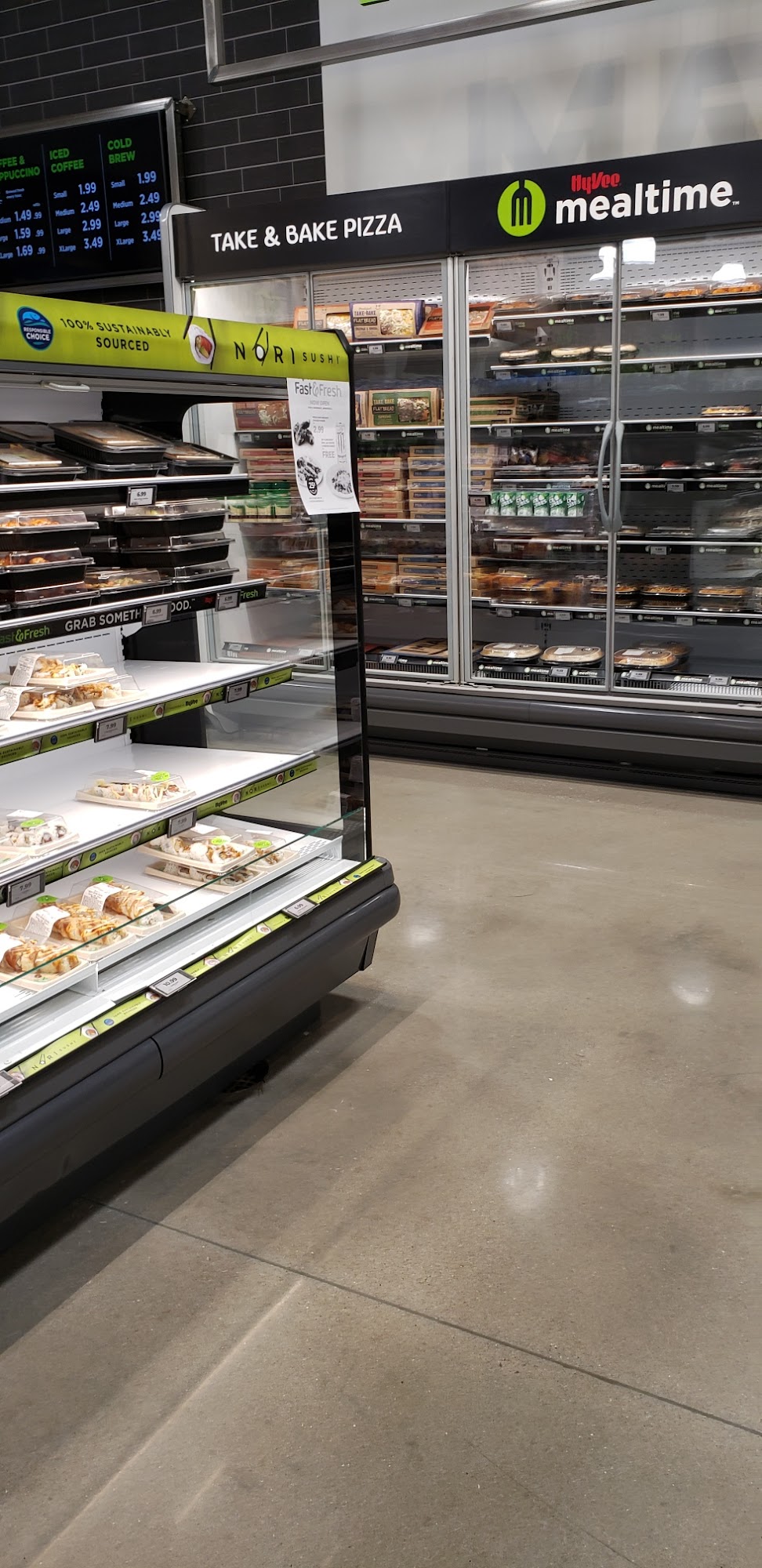 Great place to eat something on the go and Hy-Vee to get groceries