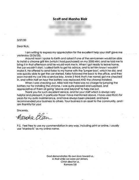 Rick's Automotive is known for providing great customer service, often going above and beyond for clients. This includes answering calls and performing deliveries late at night, well past working hours, for those in tight situations. This level of dedication is described as the definition of above and beyond care. The friendly and caring staff, comprised of highly trained professionals, has cultivated a strong reputation in the Springfield community. The business operates from a large campus complete with a car repair shop, tire shop, and lube facility, serving the local area with consistent and exceptional dedication.
