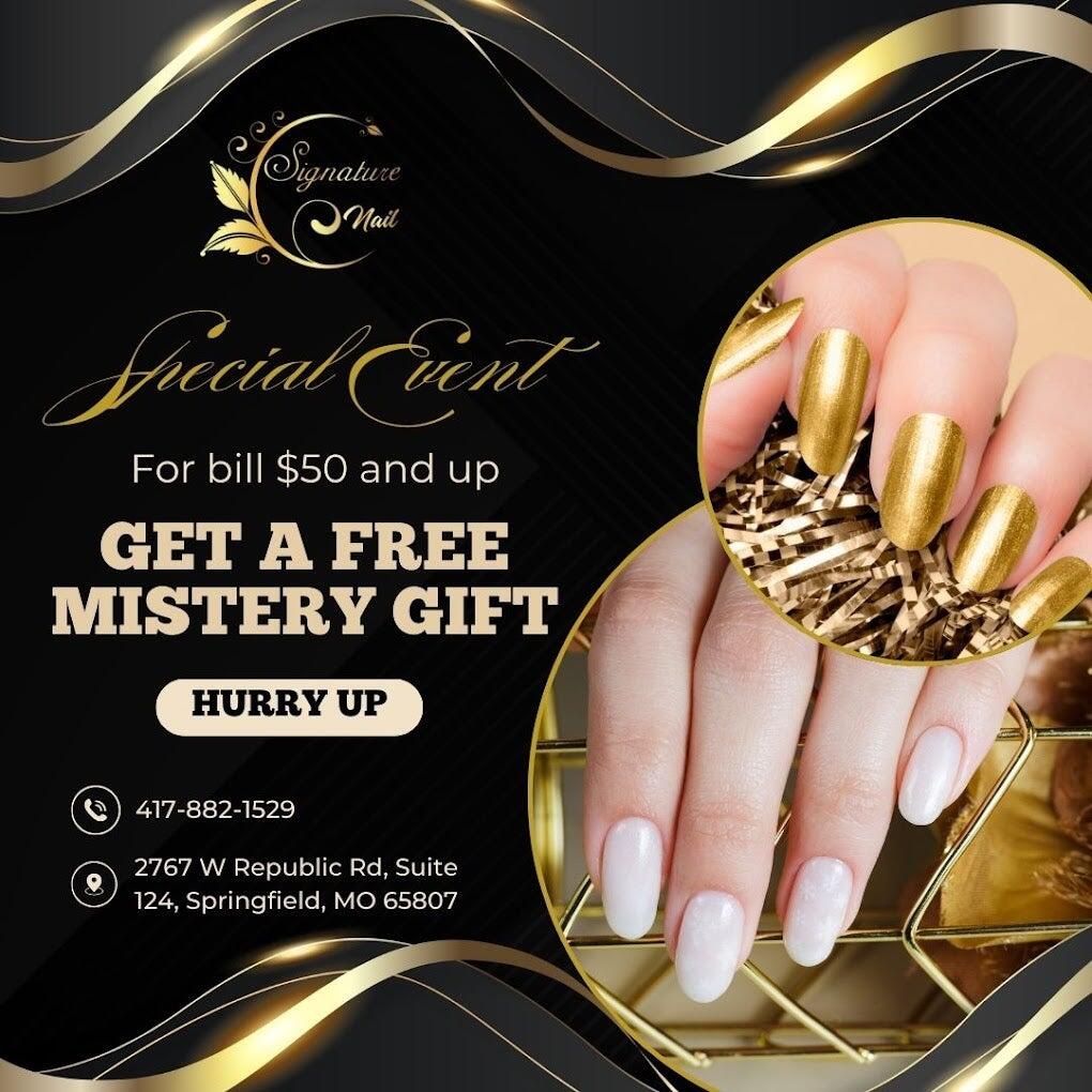 Located at a beautiful place in Springfield, MO 65807, Signature Nails offers you the ultimate in pampering and boosting your natural beauty with our whole-hearted, creative & professional staff. We are always trying to be innovative with design and trends, always up-to-date with what the industry has to offer. Come here with us, you can choose from a range of our services such as Manicures, Pedicures, Dipping Powder, Acrylics and so much more. You always feel friendly and welcome by our passionate staff who understand what you want.
