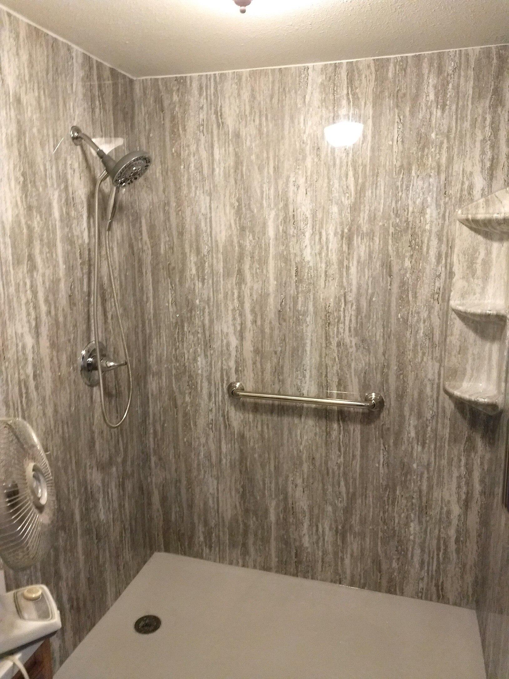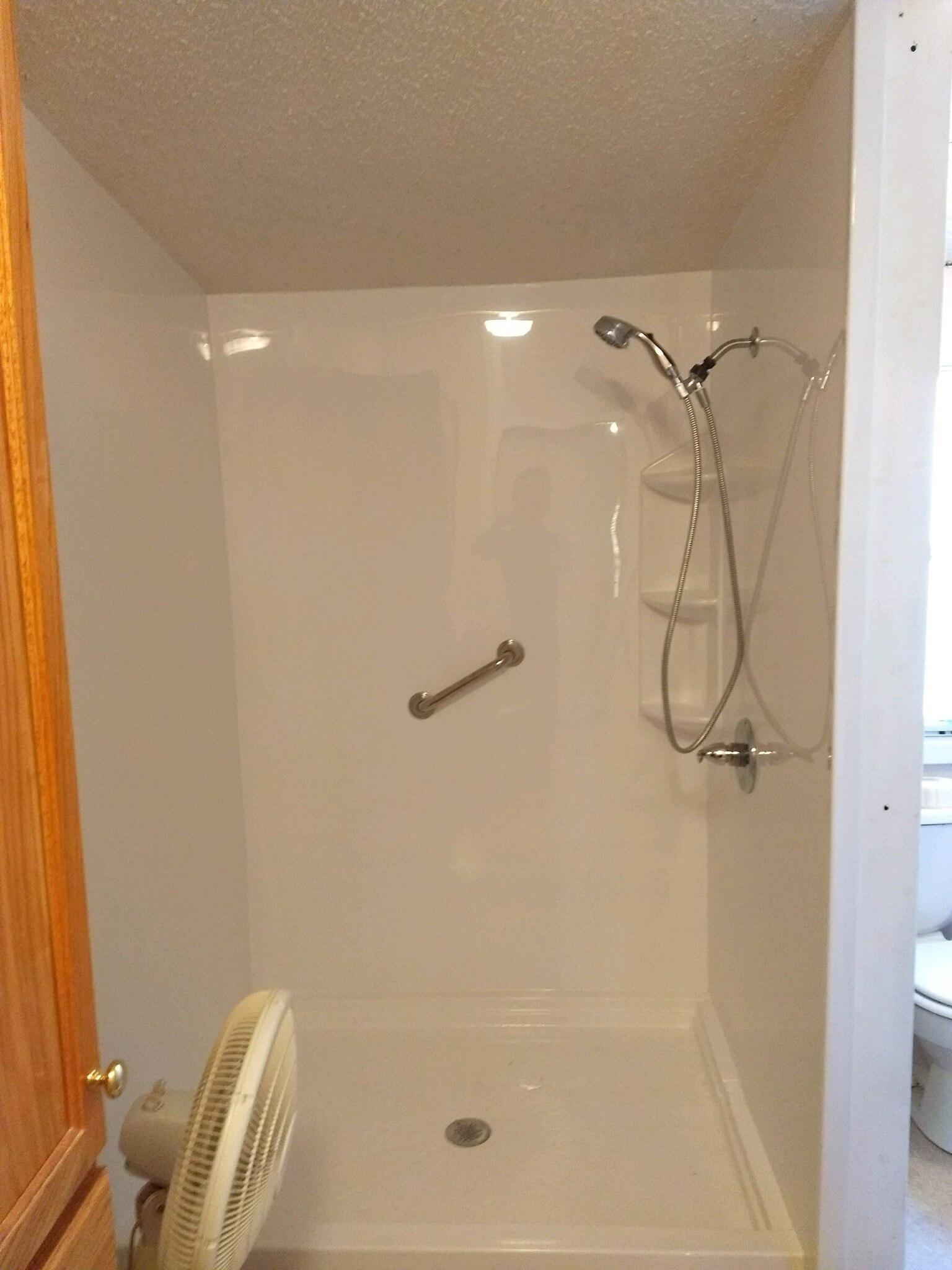 Corey did a super job! He kept the floors clean as he worked. And he never stopped working! The shower looks wonderful. The guy was just here to measure for doors and e dry thing is squared up and perfectly aligned! Actually shower replacement.