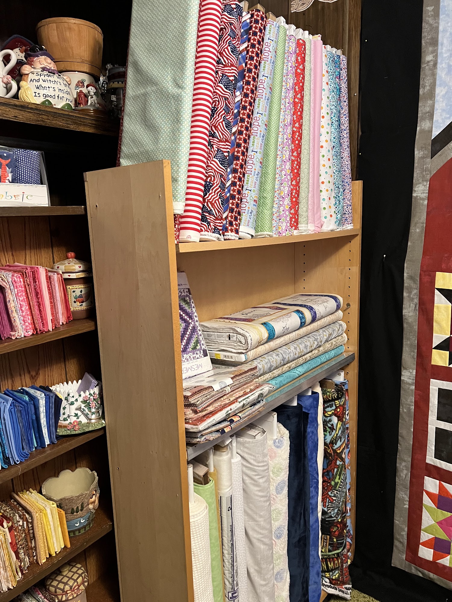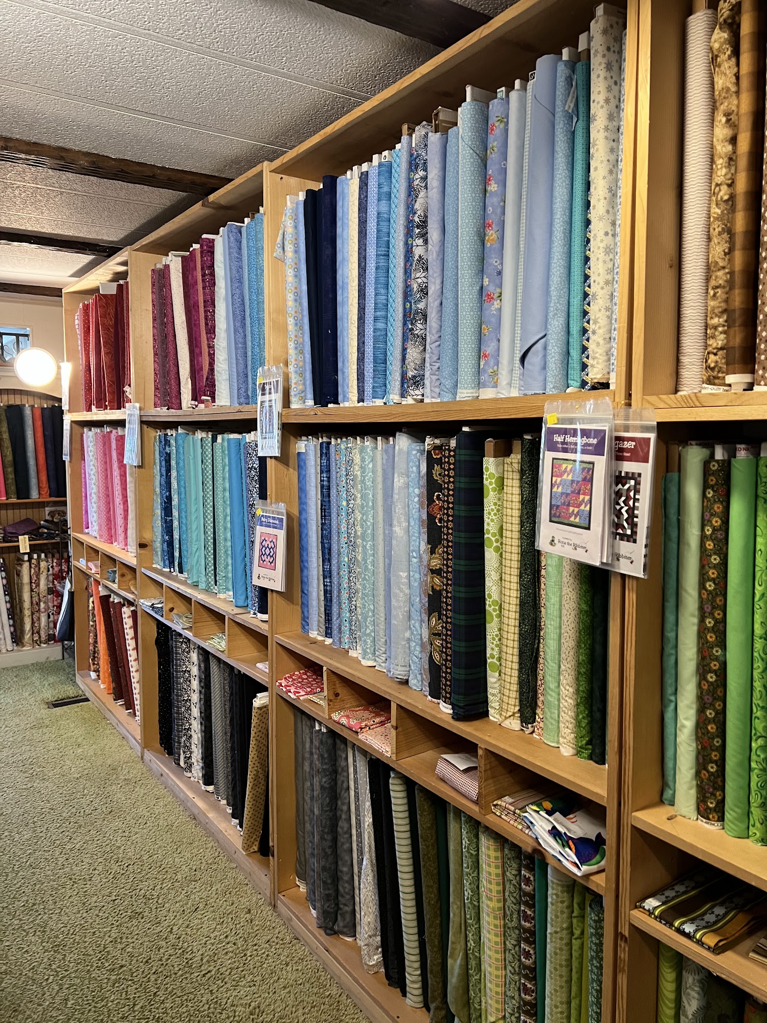 Glenda’s Sewing Cupboard is packed to the hilt with fabric, patterns, notions and beautifully displaced projects. Glenda herself is a jewel! We found Glenda because of the Quilt Trail but a great place to go if you love quilting.