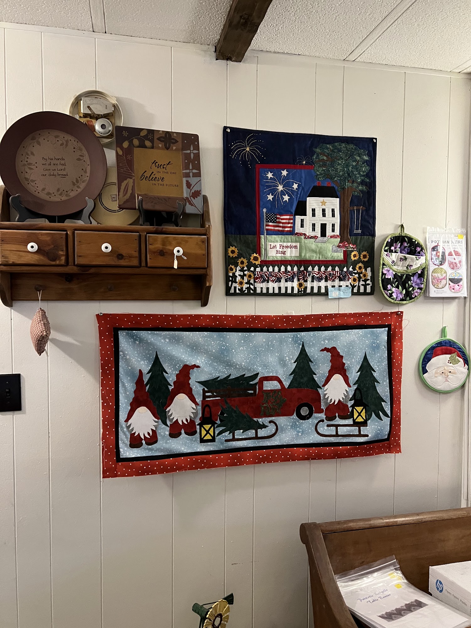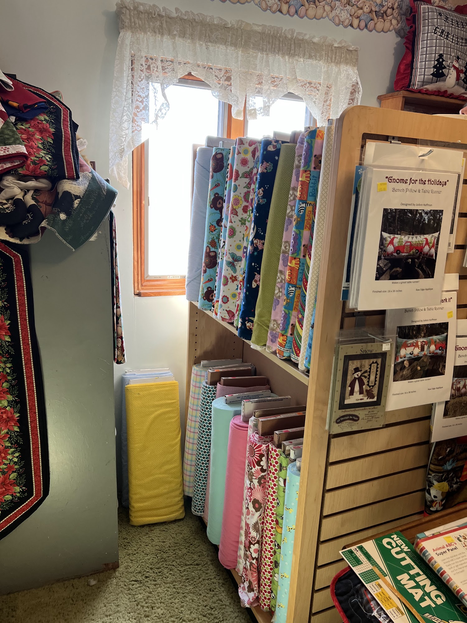 Glenda's Sewing Cupboard is a friendly and welcoming place for quilting enthusiasts. The shop is filled with a wide variety of fabric, patterns, and notions, along with beautifully displayed projects. Glenda and her family are known for their helpfulness, taking the time to get to know customers and answer questions. Visitors appreciate the beautiful fabrics and unique extras, like appliqué animals, that can enhance their quilting projects. Many customers found Glenda's while exploring the Quilt Trail and continue to return for the joy and inspiration it offers.