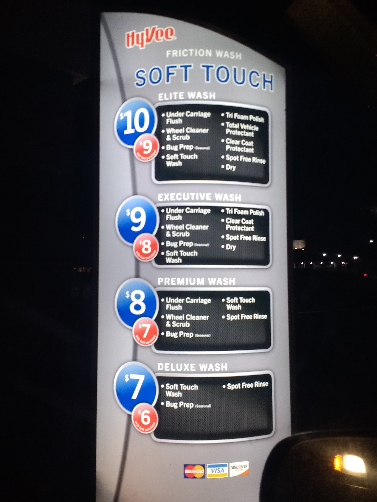 I like the car wash, always had good job done. But the reader is horrible. You can't read it if the sun is shining. There are buttons missing. Please fix!