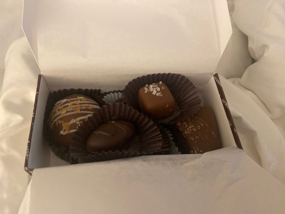 First time going there, I was really impressed by how good their chocolate was! I got the chocolate letters, S & T. Along with the pumpkin spice latte truffle chocolate bar, which was SOO rich in flavor and even surprised me by having a creme filled flavor in the middle! Would definitely get again… 10/10