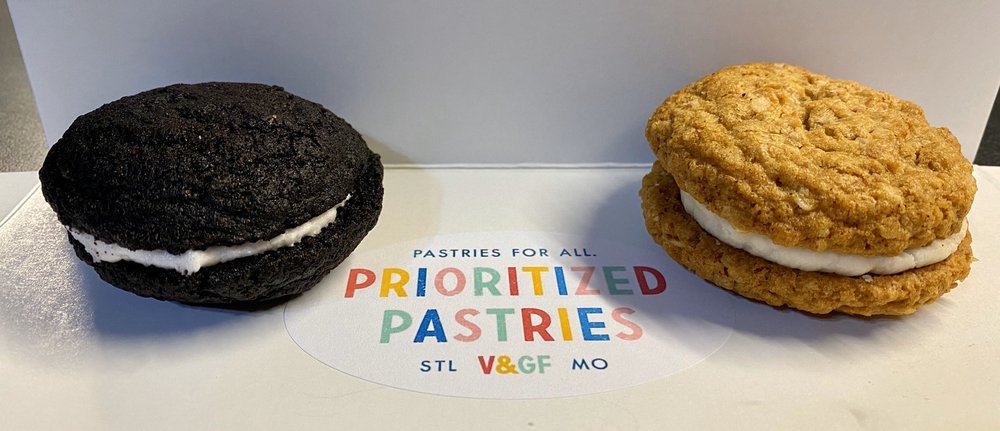 Prioritized Pastries, LLC is a St. Louis-based bakery known for its gluten-free and vegan offerings. The owner, Alex, is dedicated to ensuring everyone can enjoy cake, regardless of dietary restrictions. Customers have shared their appreciation for the exceptional customer service, highlighting the friendly staff and quick responses to questions. This bakery is celebrated for its delicious treats, such as oatmeal cream pies, apple butter snickerdoodle cream pie, and a variety of cakes. The pumpkin cake has received specific praise for being dense, thick, and long-lasting, while the oatmeal cream pies are known for their crispy cookies and smooth filling. Many customers have noted that the baked goods are incredibly tasty, proving that gluten-free and vegan can be delightful. Prioritized Pastries' gluten-free flour mixture does not contain almonds, making it a safe choice for those with nut allergies. They also offer soy-free icing made with coconut, upon request. The bakery is recognized for its commitment to catering, providing options for events and making it easy to enjoy their treats at gatherings. Customers appreciate the thoughtfulness and care put into each order, with Alex being commended for her dedication to ensuring that everyone can enjoy baked goods, even with dietary restrictions. In summary, Prioritized Pastries, LLC is a highly-regarded bakery in St. Louis that offers a variety of delicious gluten-free and vegan baked goods. With exceptional customer service and a welcoming atmosphere, it's no wonder that many customers recommend this gem to others.