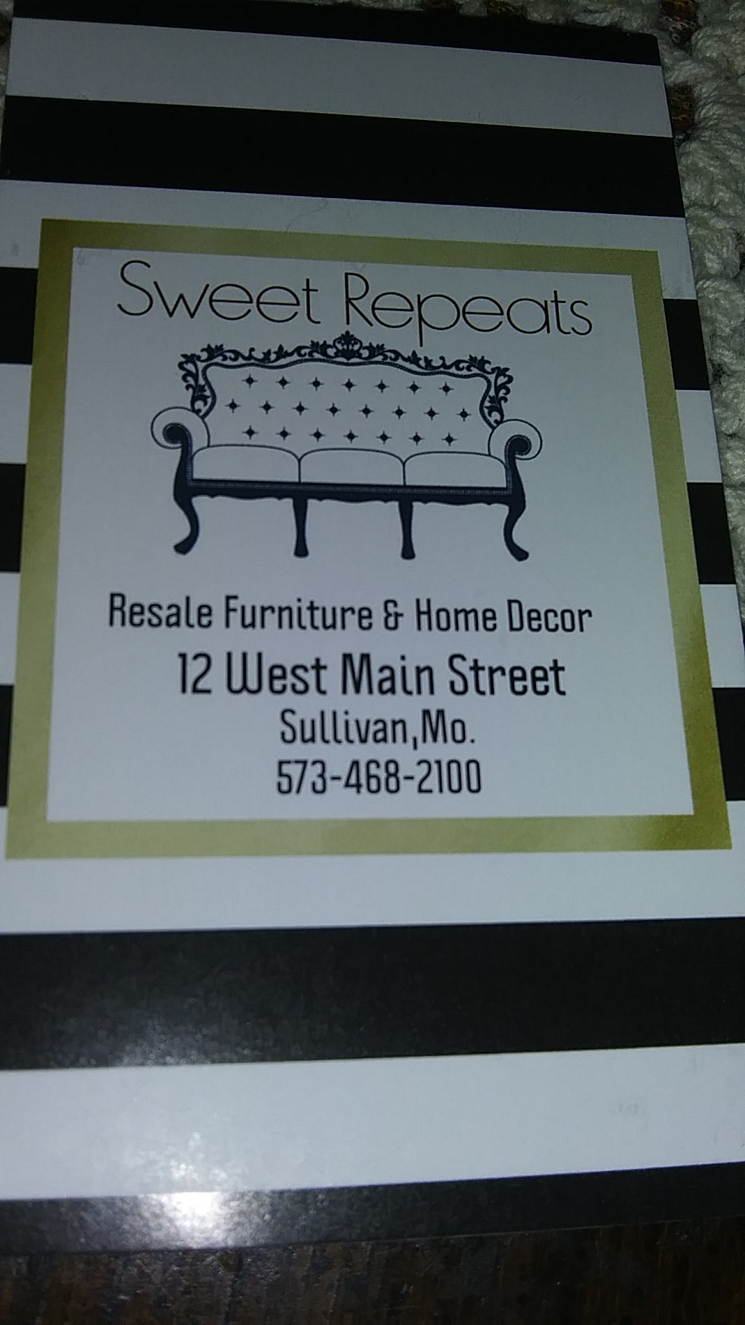 Sweet Repeats is a highly recommended business known for its good quality furniture and eclectic selection of items for the home, including unique pieces like breakfast bar stools and antique furniture. Customers appreciate the fabulous condition of items at great prices. The owner is also praised for her compassionate actions, helping individuals in need. With options for layaway and a variety of products, including jewelry, Sweet Repeats is considered a must-visit for enjoyable shopping experiences.