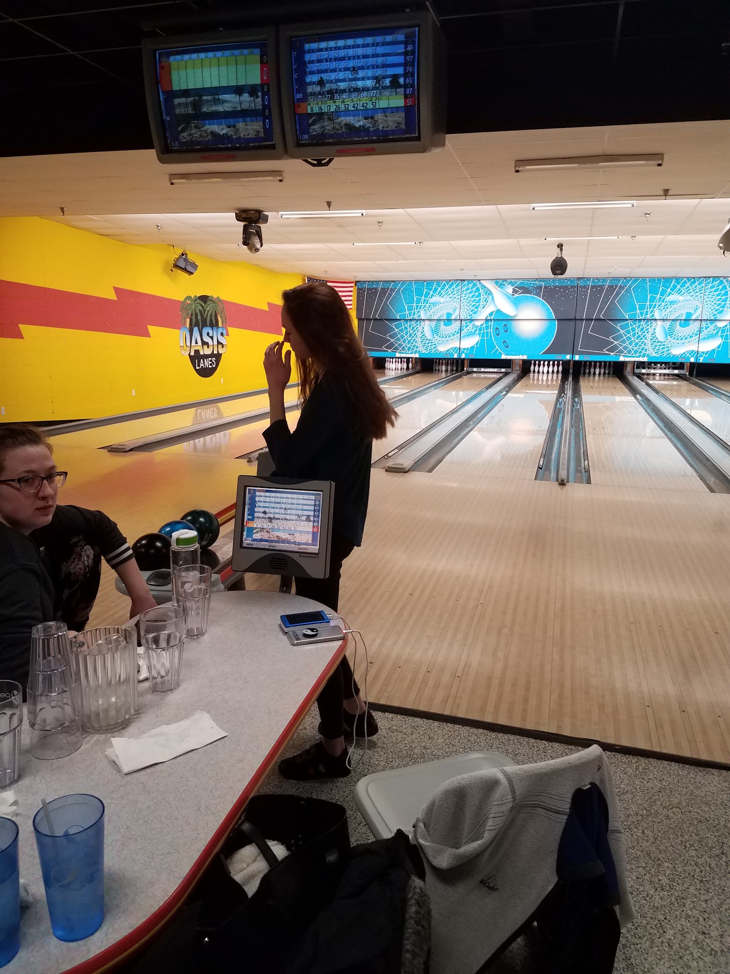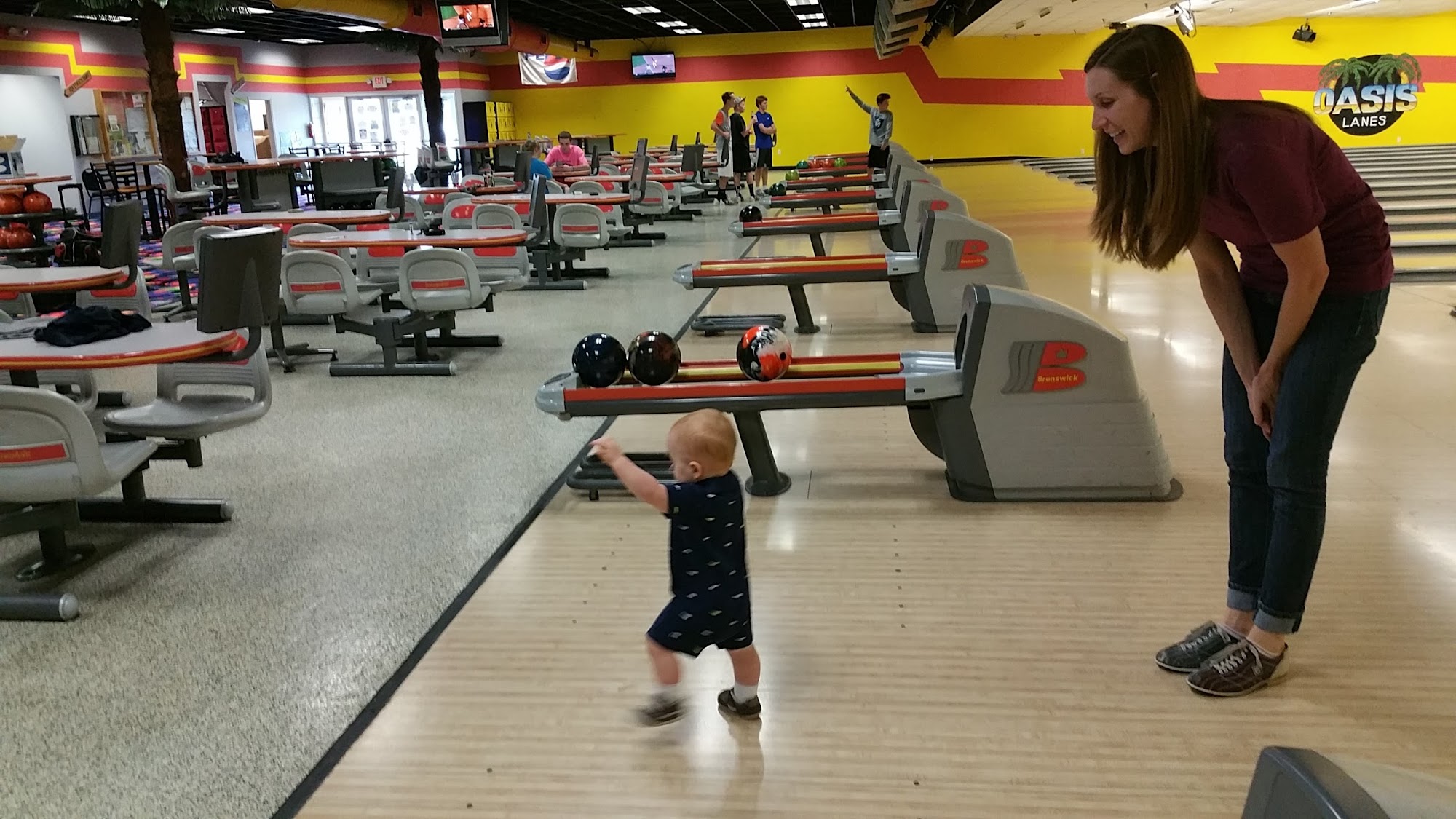 Oasis Lanes is a local bowling center that offers a fun and enjoyable experience for visitors. The facility has good-quality shoes and balls, and the lanes are generally in good condition, though some may have minor issues like ruts or missing chunks. The arcade games provide additional entertainment options. The staff is friendly and attentive, with one bartender, Melodie, being praised for her excellent service and personable nature. The food is also reported to be great. While the facility may be a bit warm on hot days and the service can be slow at times, the overall experience is positive, with one customer giving the staff a 5-star rating for their polite and professional service. The only potential downside is that the lanes can fill up quickly, especially on weekends, and reservations may not be available.