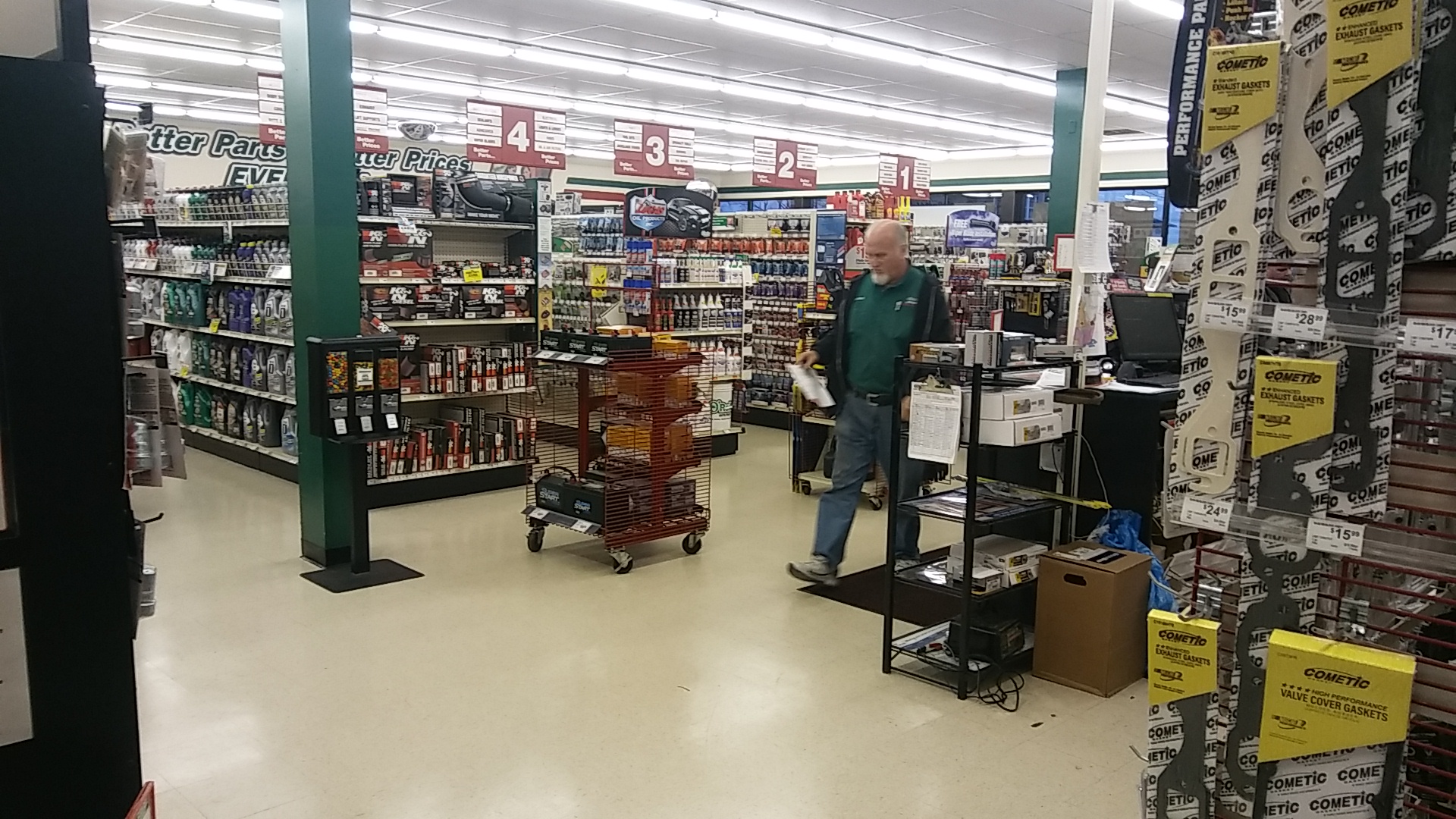 I helped my apartment complex neighbor by taking him to the O'Reilly's Auto Parts store. He needed a new battery for his car remote control. The salesman put the new battery in for him.