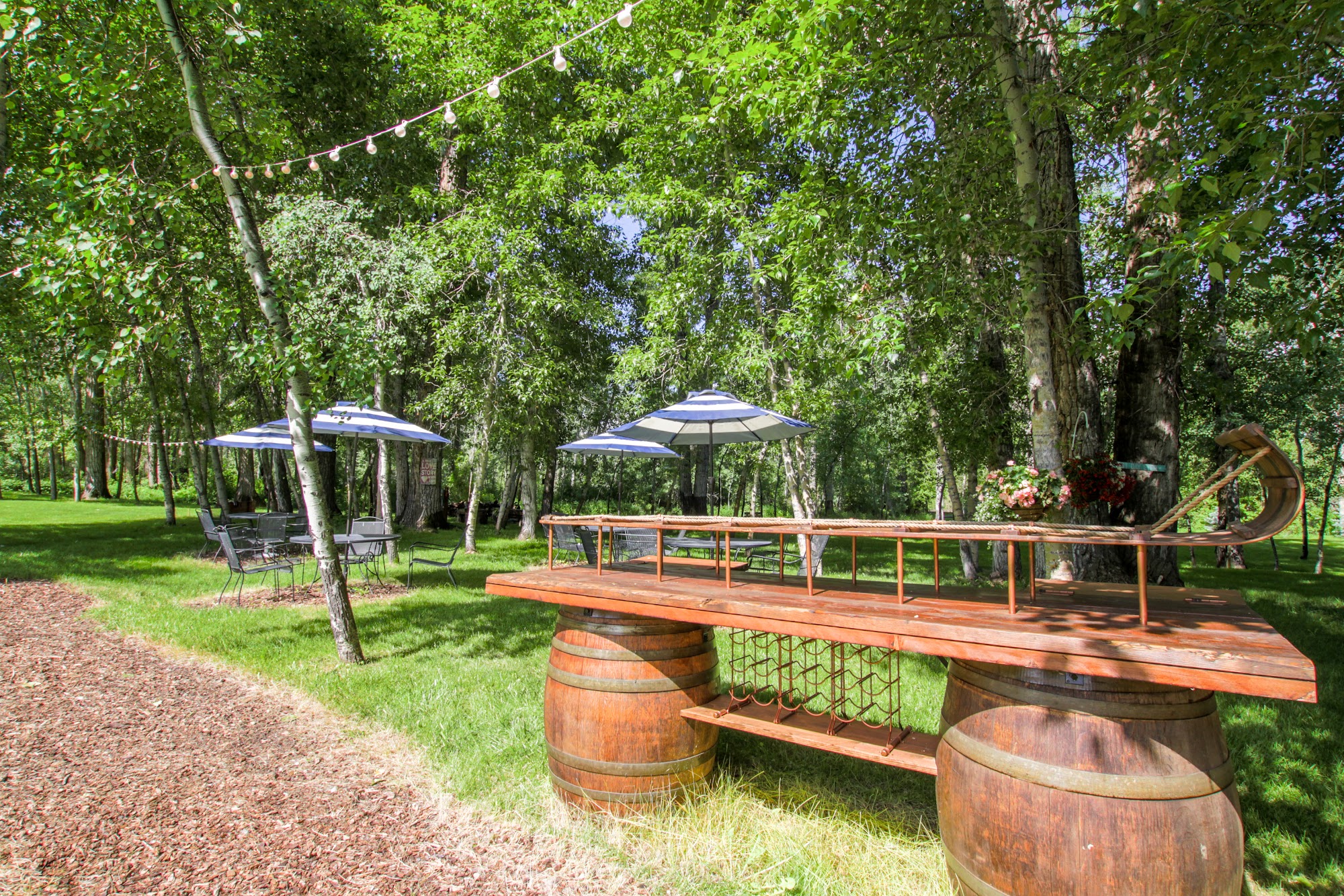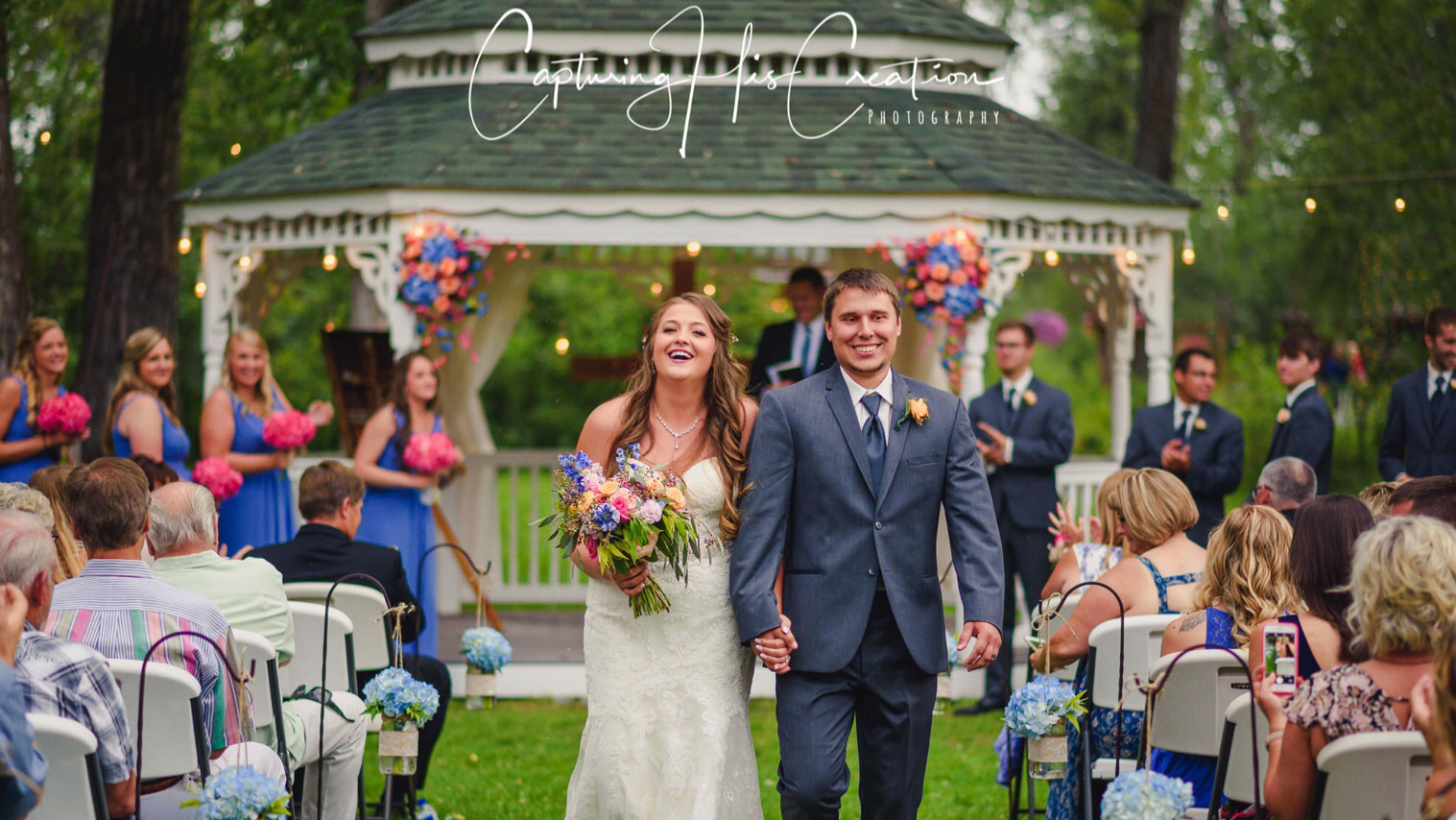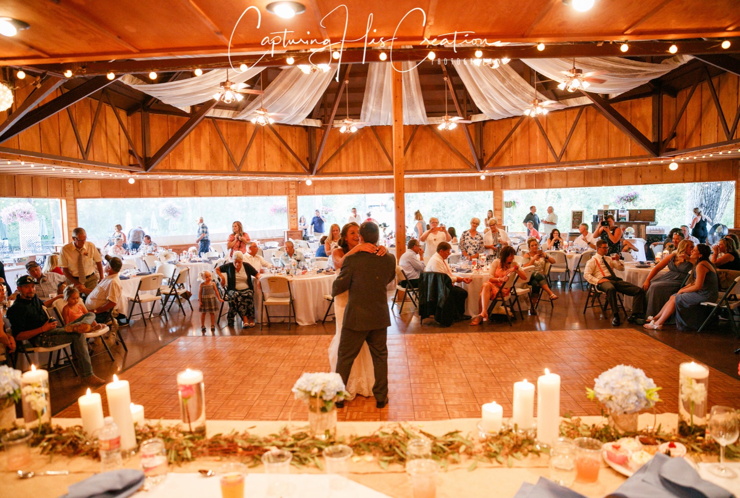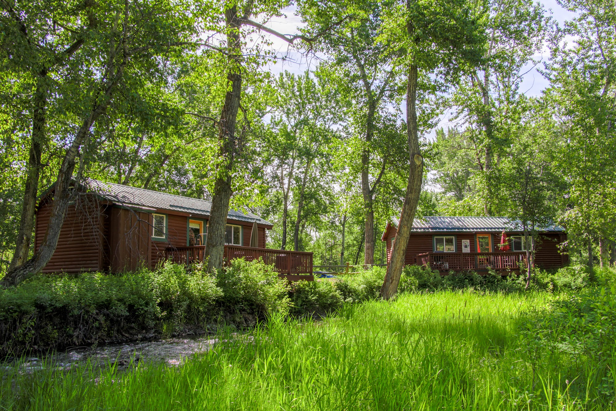 Gallatin River Hideaway is Bozeman’s top 2 venues, "Creekside" or "Bridal Veil". Both provide the perfect setting for your wedding ceremony, reception, party or corporate event. The Gallatin Creek winds its way among the tall cottonwoods and aspens and through both venues. We are LGTBQIA friendly. All are welcome here! Both Creekside and Bridalveil offer the option of “indoor” or outdoor use. The pavilions can be opened for an outdoor feel, or closed for a cathedral atmosphere. Each include dance floor, stage, gazebo, grassy meadows, Edison lights in the trees, horseshoe pits, fire pit, outdoor seating, tables and chairs, 2 tap keg bar, speaker with mic & stand, flush toilet restrooms, catering kitchen, kid’s play area.