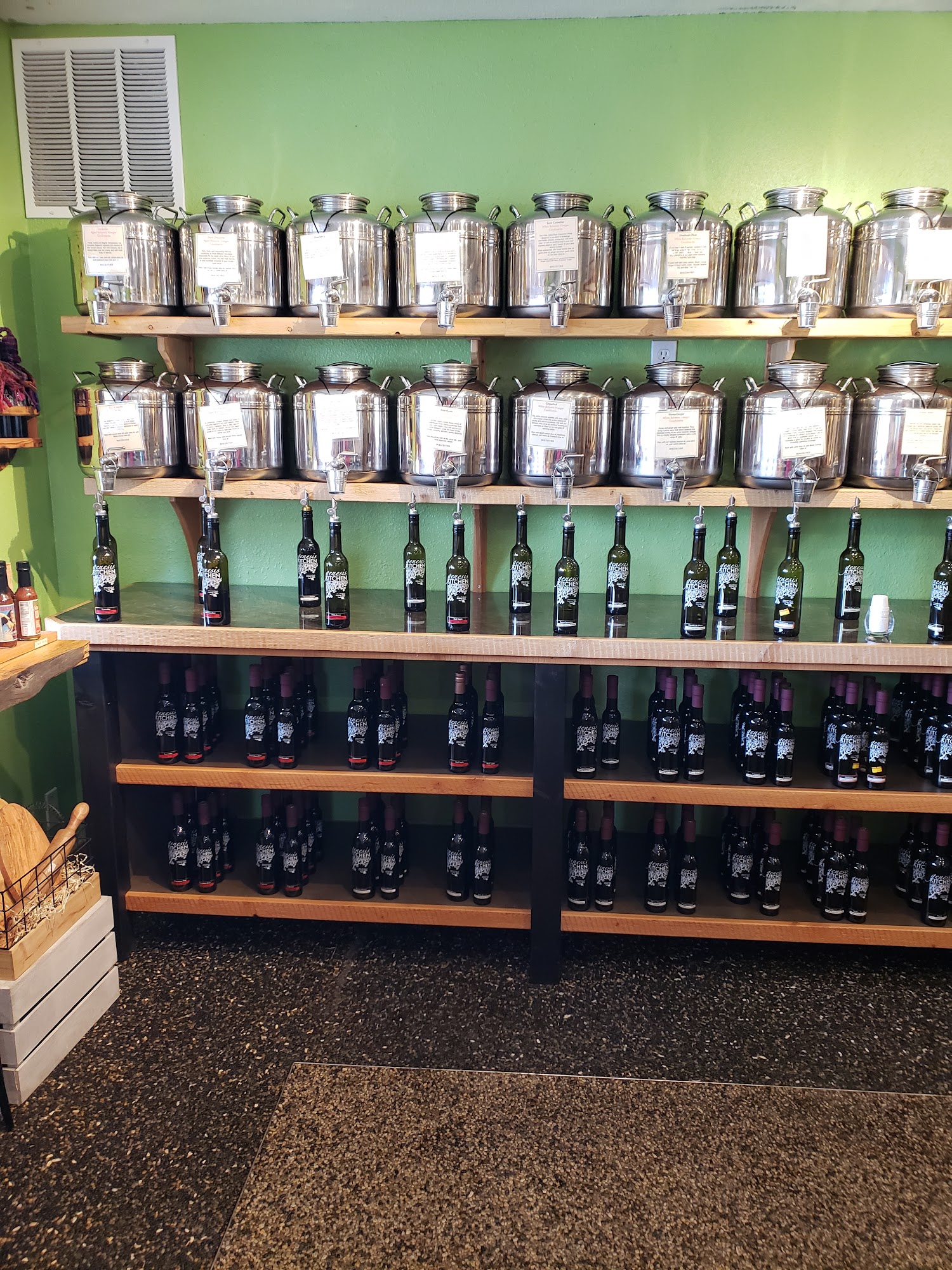 Genesis Kitchen offers a wide selection of delicious oils, vinegars, chocolates, and fine foods from around the world, including Spain and Australia. The shop features an amazing variety of olive oils and vinegars, with many tasting options and recipe ideas provided by knowledgeable staff. Customers appreciate the friendly service and the unique products, making it a great place to find Christmas gifts or ingredients for a special meal. The store is conveniently located with ample parking and is easy to find. Visitors enjoy the cute atmosphere and the chance to discover infused oils and other gourmet items like pastas, truffles, canned salmon, artichokes, and pesto. Refill discounts are available for olive oil bottles, adding to the appeal. Overall, Genesis Kitchen is a must-visit for food lovers and chefs alike.