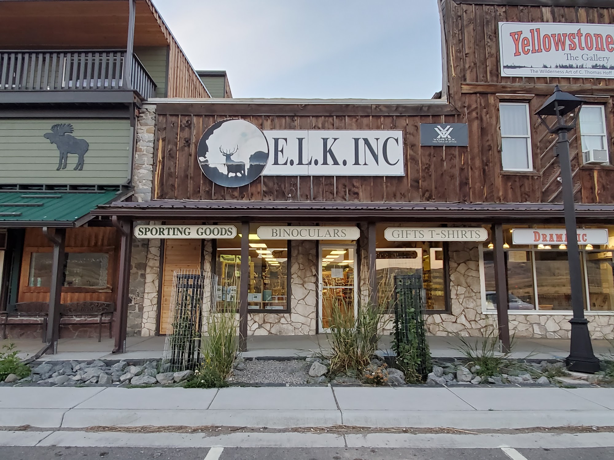 Elk Inc. is a store offering scopes, binoculars, knives, and souvenir items like hoodies and shirts. They sell a nice collection, including Vortex brand scopes and accessories. The customer service is great, awesome, and very helpful, with staff attentive to questions and assisting customers in trying and choosing the right models. The prices are the same or lower than other retailers. While it has a nice selection of miscellaneous items and bear spray, it does not have a wide variety of sporting goods like shoes or gear. It is a great store for a fantastic experience.