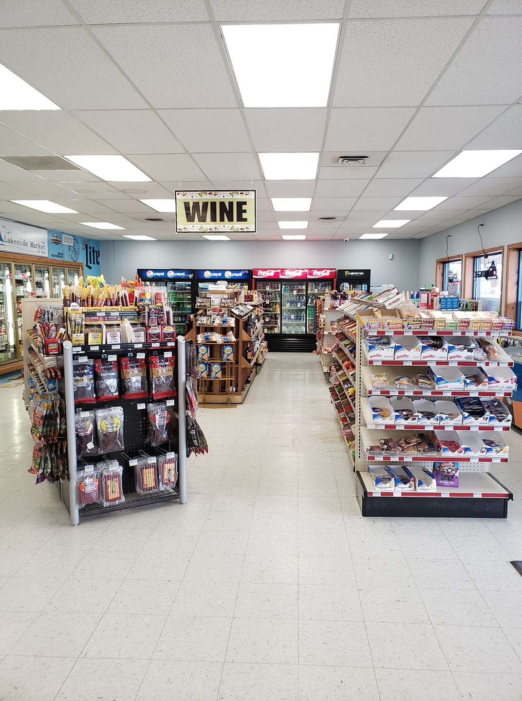 Lakeside Market & Gas is a small community market with a bit of everything. We have camping and fishing gear along with groceries. Come see our new selections of beer & wine!