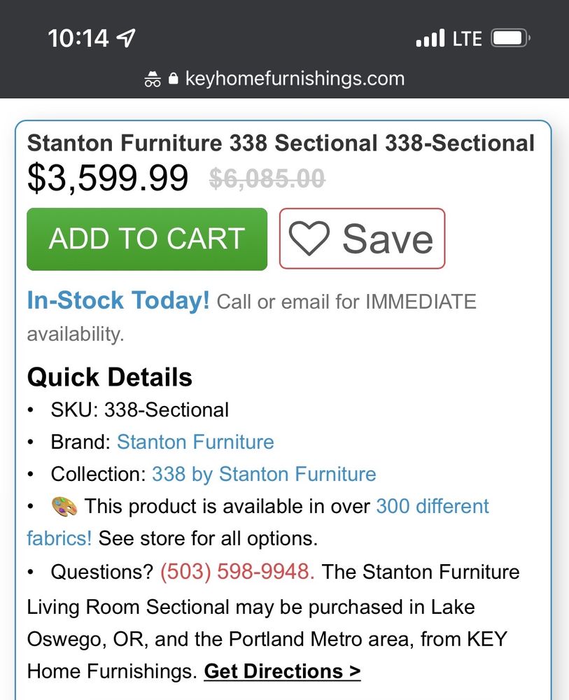 Wonderful service from the staff. They were kind, knowledgeable and didn’t “hover” excessively. The store had a great selection of different furniture suitable for varying budgets. Thank you!