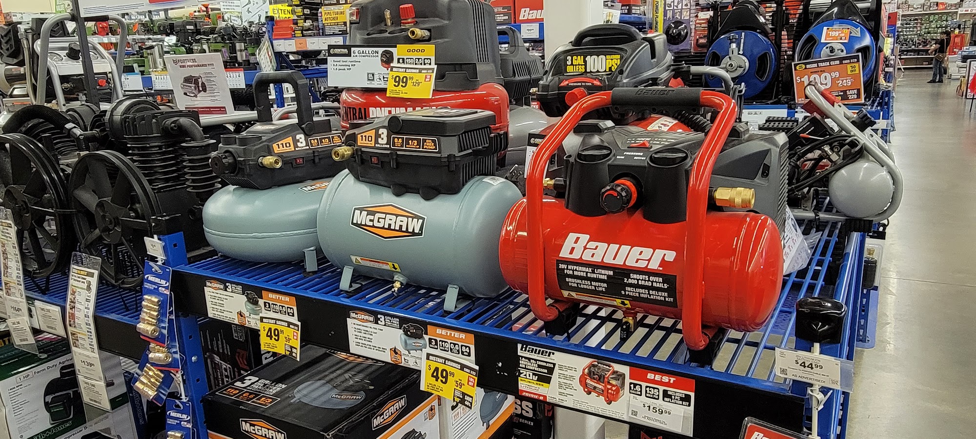 Harbor Freight is America's #1 Tool Store with more than 1600 locations nationwide. Over 75 million customers have come to Harbor Freight for their unmatched assortment of quality tools at an unbeatable value, including automotive, air and power tools, storage, outdoor power equipment, generators, welding supplies, shop equipment, hand tools, and much more. Customers are very happy with the things they've purchased there over the years, with the store's US general tool boxes, McGraw air compressors, and new 1700 lb capacity utility trailers receiving high praise for their excellent quality. The staff is also commended for their kindness and helpfulness, even when customers don't know the name of the tool or item they're looking for. Harbor Freight is described as a great place with everything you need and want, similar to Princess Auto in Canada.