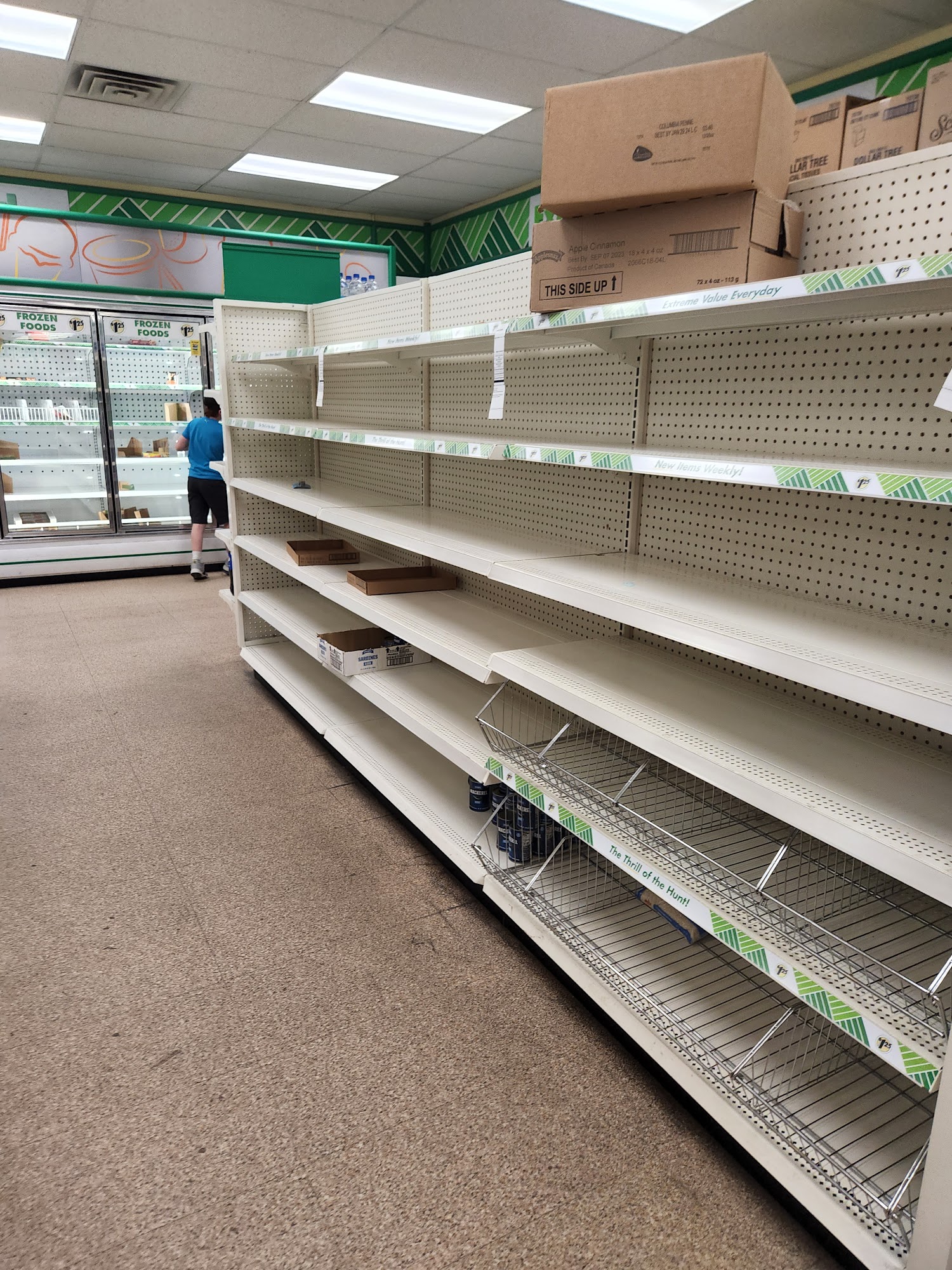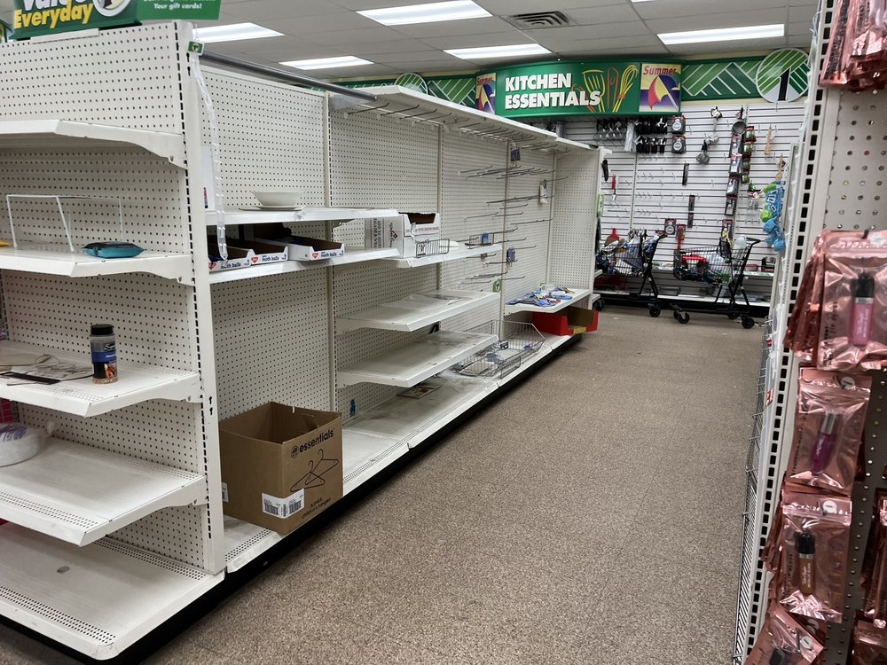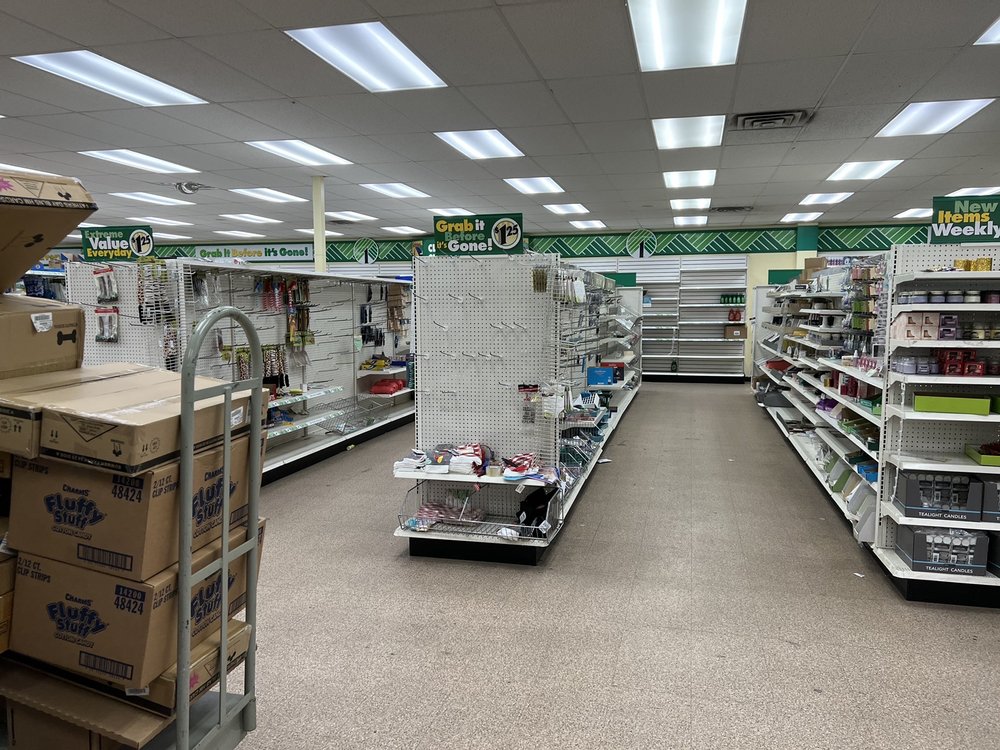 Large store , with less product than most . So many things dollar tree has , they didn't. The cashier wasn't very helpful either . The store could use a little more TLC .