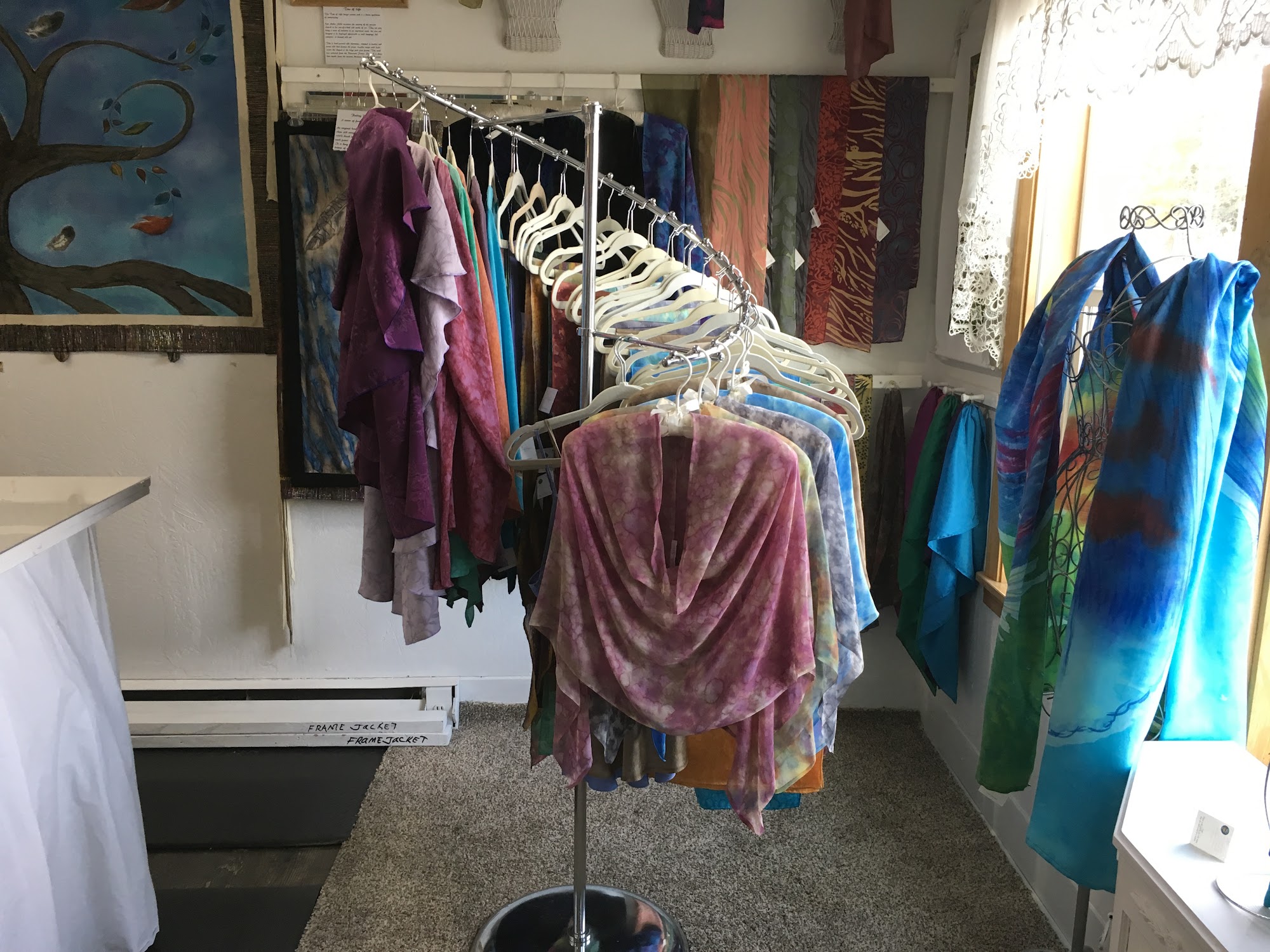 I stumbled upon Lisa’s studio the other day. I was driving around and was killing some time. I walked in and saw her breathtaking silk work. It is one of a kind and is absolutely gorgeous. It’s very elegant and unique! Stop by her store or look online at her beautiful clothing and silk art work.