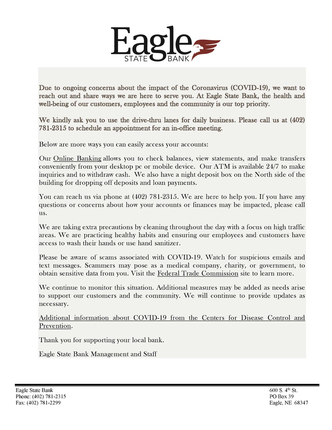 Our commitment to helping people and businesses succeed extends back to 1814. We make loan decisions locally and have enough lending power to support area residents, small businesses, family farms & multi-million-dollar operations. Member FDIC, EHL