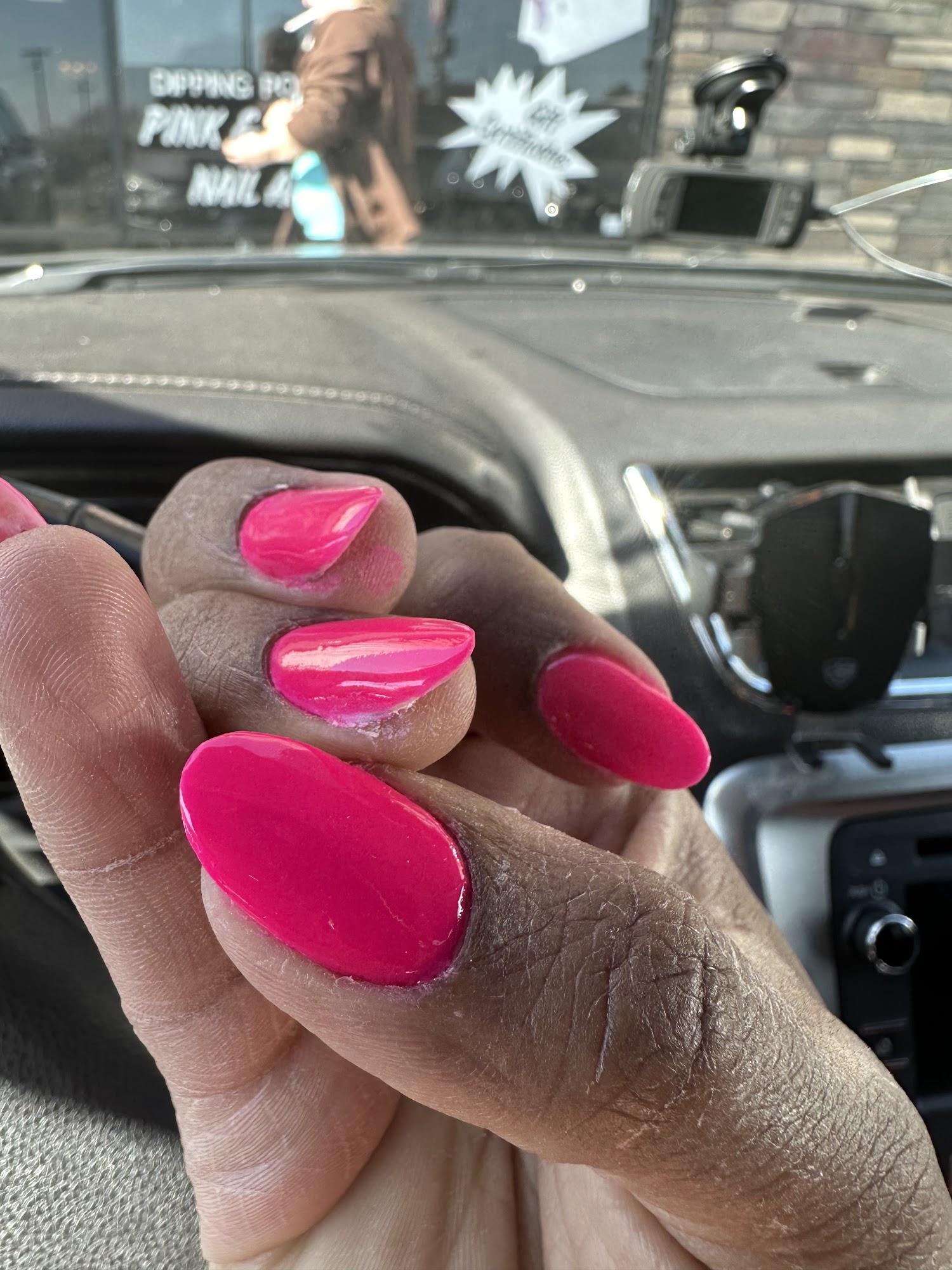 Hidden gem...this little shop is tucked in off the street and the staff is very friendly and welcoming. I was able to get a pedi and refill with an hour tops! Loved their prices too.