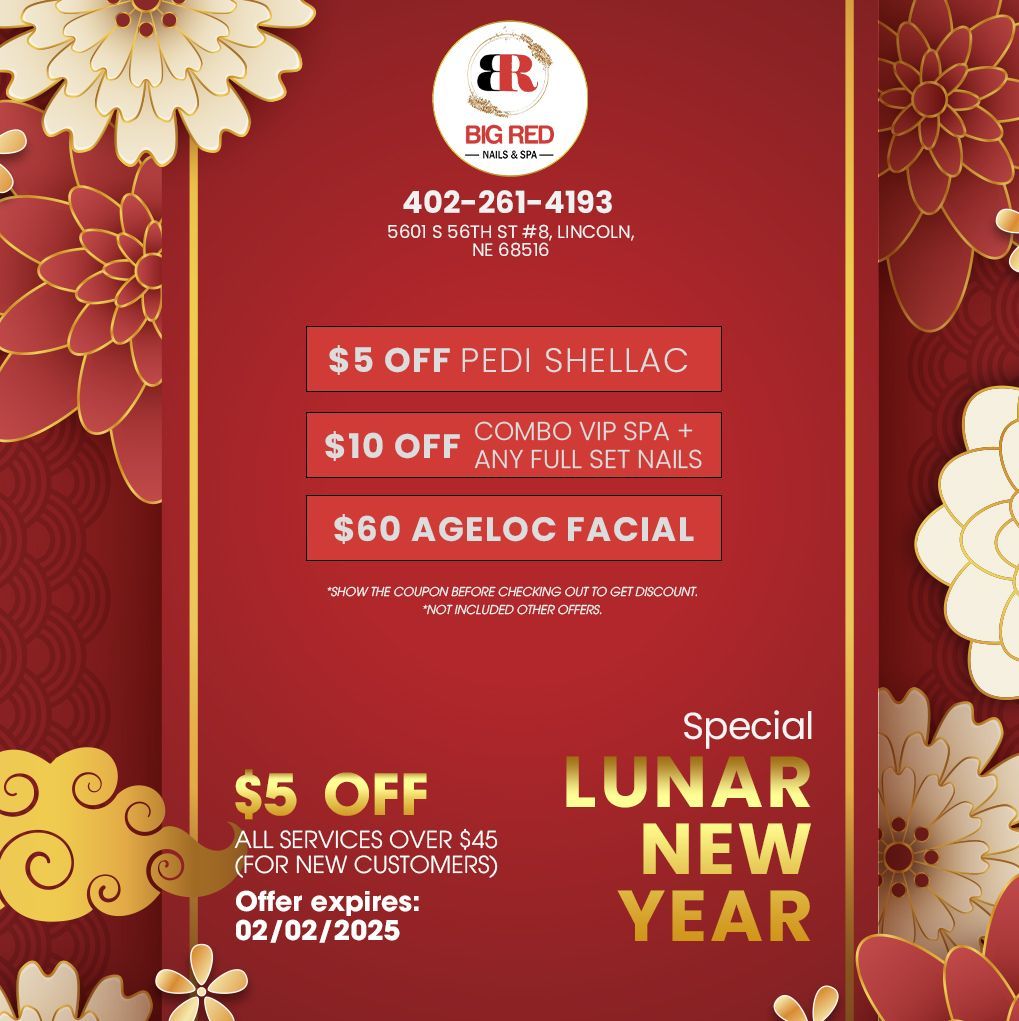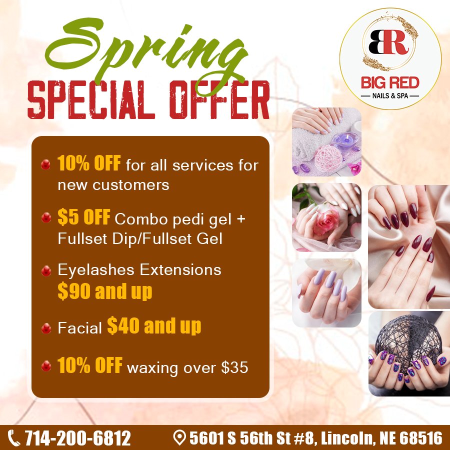 Located conveniently in Lincoln, Nebraska 68516, Big Red Nails & Spa is a nail salon which pleased to provide the clean and welcome atmosphere, which will make you freely enjoy the relax moments and escape from all of life’s pressure to make the most of wonderful time. Big Red Nails & Spa is a haven of relaxation that promotes comfort, beauty, well-being, and health. Our priorities are client-focused services, high-quality products, and above all else, grade-A sanitation standards. We are committed to bringing you the latest advances in beauty care and only use the most trusted brands in the beauty industry. Our world-class products, services, and top technologies will help you feel great and look your best!