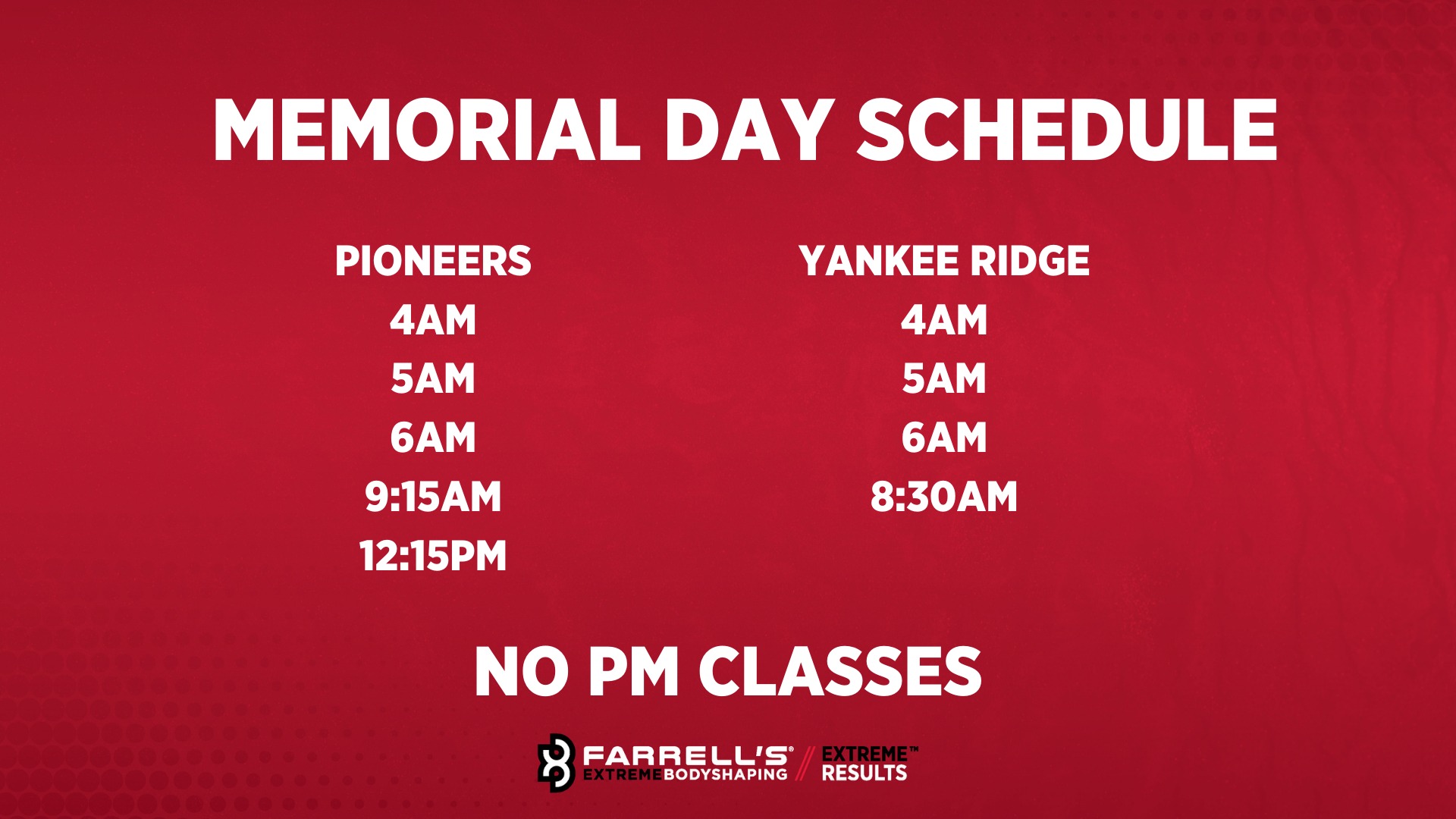 Farrell's has a fantastic atmosphere that is both fun and supportive of whatever fitness/health goals you may have!The owners truly care and the workouts vary keeping it interesting. They 6+ classes a day/5 days a week plus Saturday classes to fit your schedule what do you have to lose?
